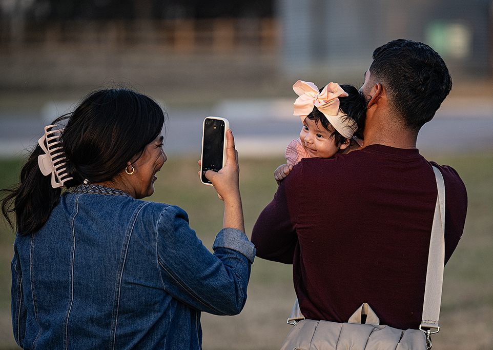 Mom and dad spend time with their one-month-old daughter at Berry Springs Park & Preserve on Friday. The second photograph was taken tonight in downtown Taylor, light shining on a bench along Main Street.