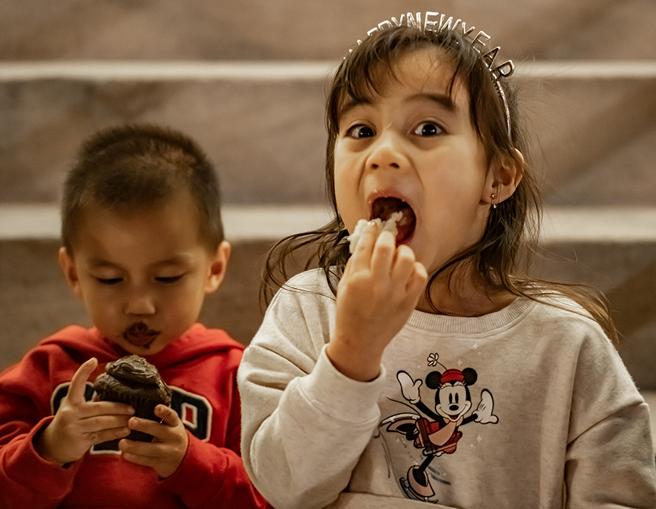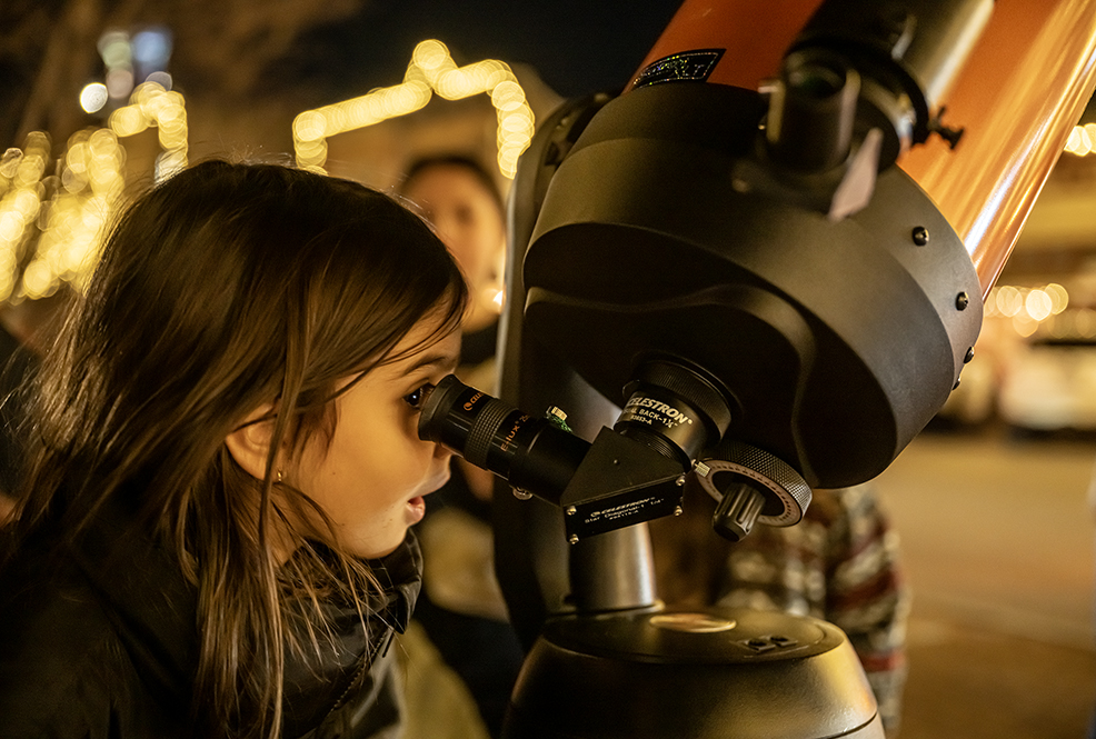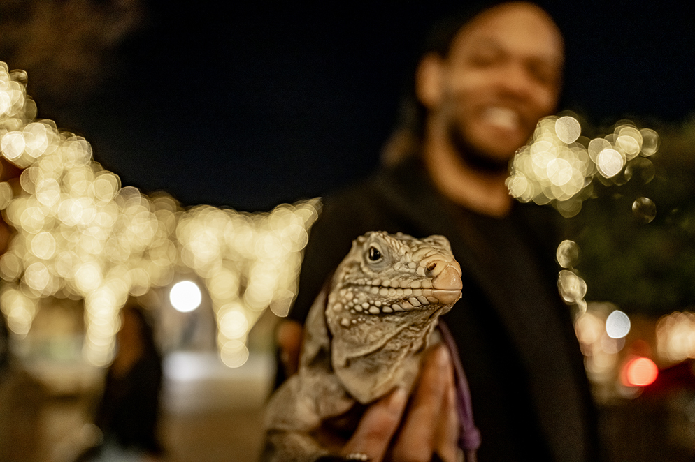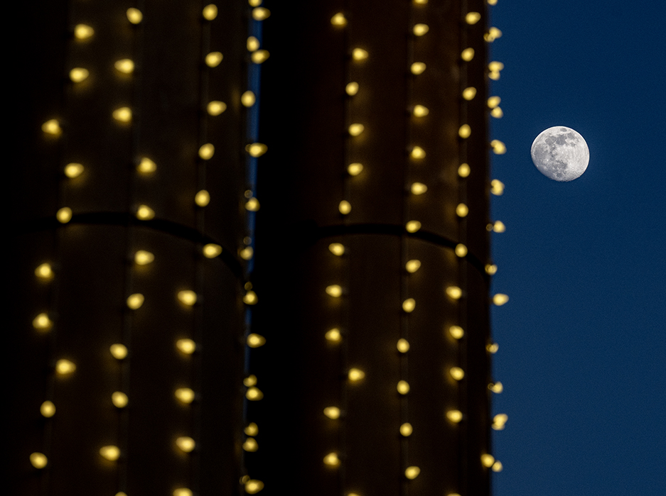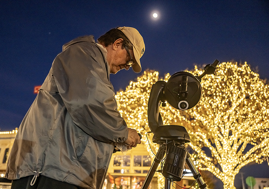 A few photographs from New Year’s Eve on the square in Georgetown, Texas. A Waxing Gibbous moon, at a bit over 92% visibility was shining. Bradley brought his powerful telescope to 8th and Main Streets for square visitors to get an unclose look. And siblings enjoyed cupcakes on the the fourthouse steps with their mom and dad. A Rock Iguana named Zule also enjoyed a night out with his human.
