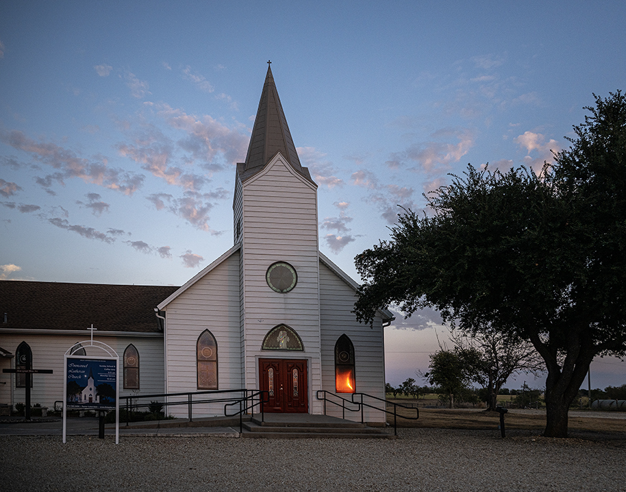 It was nice seeing a friend who attends Taylor’s Immanuel Lutheran Church while at the grocery store today. So tonight is a good time to post recent photographs taken there just a few evenings ago. This beautiful church rests a hair’s breadth from the Samsung Semiconductor plant site, but when you’re standing on their grounds you don’t even know it’s there. Good neighbors give one another good space.