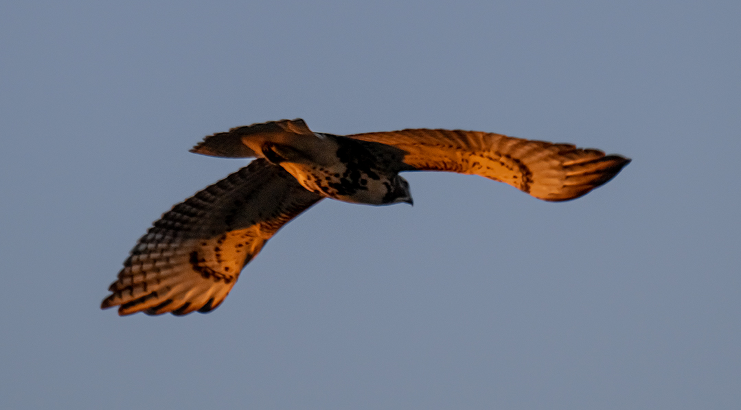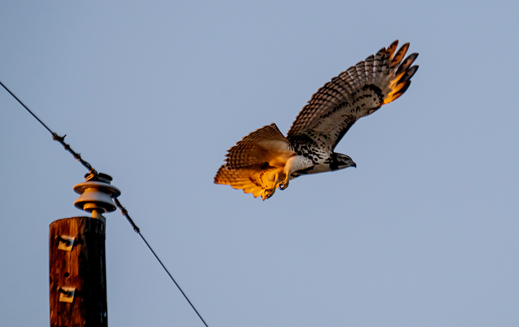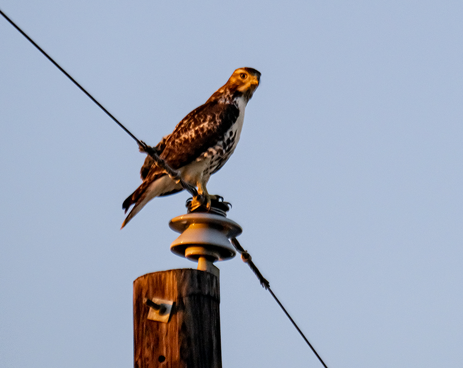 Getting photographs of raptors continues to be a challenge. Most of the time they’re spotted on utility poles during daily drives. The cameras are always sitting in the empty passenger seat, ready to go. More times than not, when these majestic birds (this one’s a Red-Tailed Hawk, isn’t it?) see the camera they quickly depart. This week, however, when the late-day light was at its warmest, this hawk was a bit more helpful. Light can sometimes make things look good.