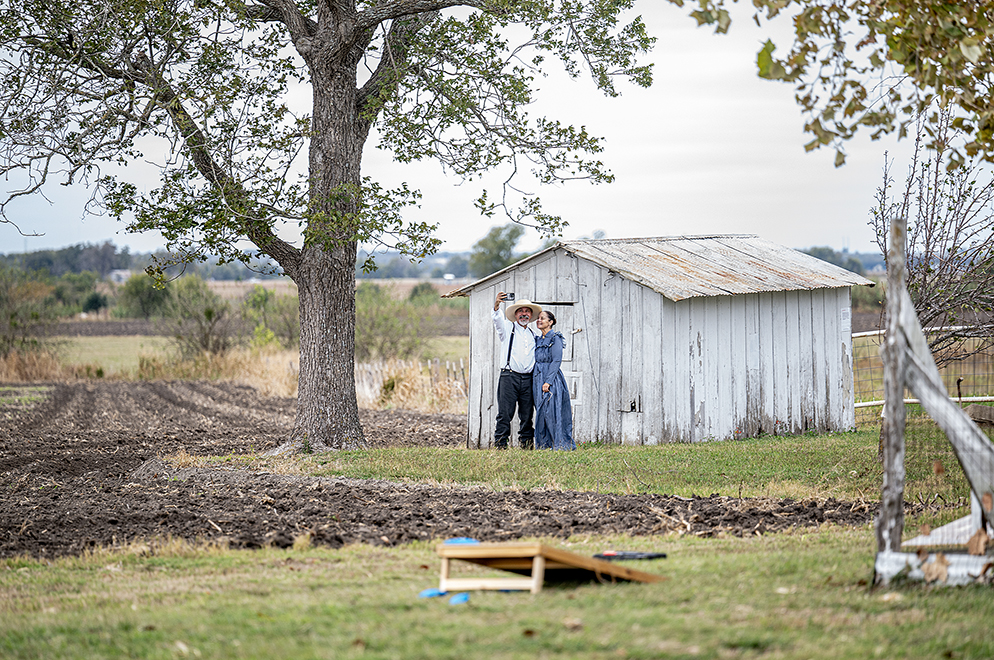 Photographs taken today during Heritage Farm Day at the Lutonsky Farm, nestled on pristine acres a few miles south of downtown Taylor. This first Heritage Farm Day was hosted by the Greater Taylor Foundation Food Insecurity Council. The group’s founder wants to see some of our disappearing farmland used, at least a little, for food to be consumed by humans. The Lutonsky farm is 125 years old now, still maintained by descendants of the original settlers, John and Rosa Lutonsky, a couple who immigrated to the the United States from the Moravian region of the Austro-Hungarian Empire, now called the Czech Republic. The couple were sharecroppers for ten years, saving money to purchase their farm in 1900. Most of the 125 farm’s structures still stand, including a very nice old farmhouse. From the outside the house appears small, but stepping into the attic you’d think it was huge! Today’s day included antique tractors, pony rides, hay rides, a petting zoo presented by Mini Mischief Ranch, plus regular tours of the farmhouse. The couple in the opening photo are actually friends, not even recognized at first, but they’re standing in a picturesque spot of prairie land. The starlings were active this morning over the farm’s fields. Alas, the birds didn’t create a murmuration, but they were dandy flyers! One of the main reasons we moved to Taylor years ago was the delicate, but powerful beauty of this land. It was a no-brainer to attend today’s event.