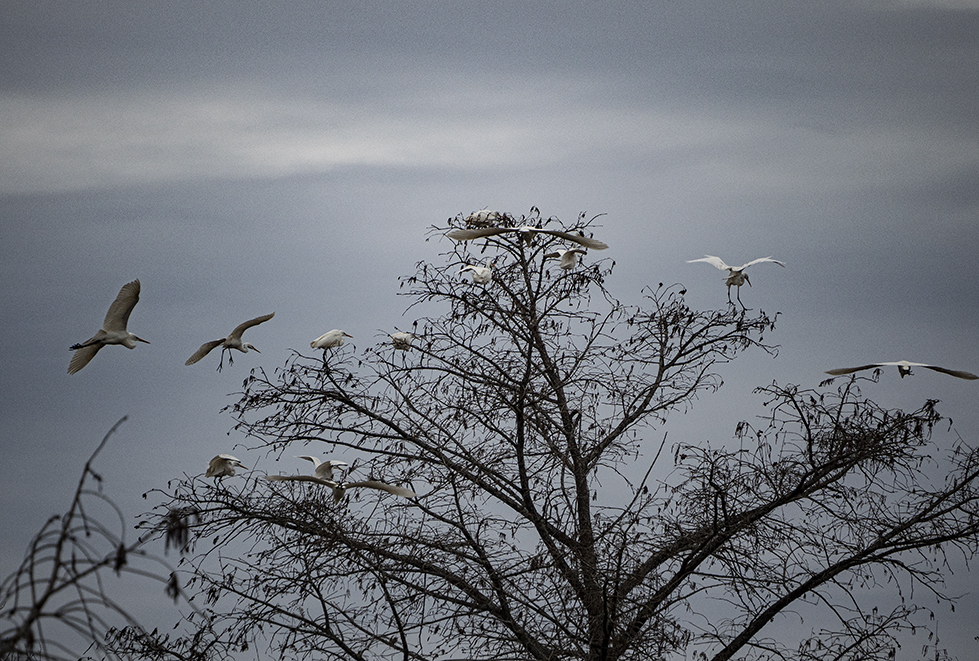 From tonight at Taylor’s Murphy Park, the always-present cormorants enjoying their evening under a Waxing Gibbous moon, a little over 97 percent visibility.