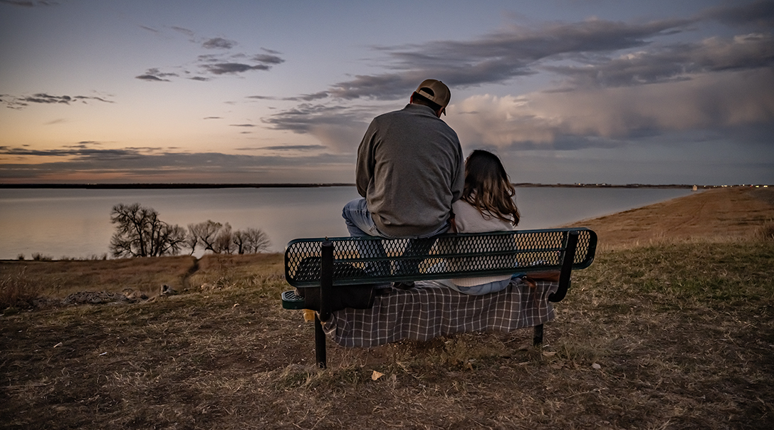 A version of this photograph is on the front page of this weekend’s Williamson County Sun. A couple takes in the serenity of moments just after sunset at Granger Lake.