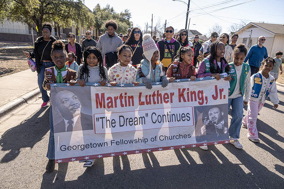 Photographs taken this afternoon during the annual Dr. Martin Luther King, Jr. holiday observance in Georgetown, Texas. A march from the Georgetown square led to a program at Macedonia Baptist Church. This annual event is coordinated by the Georgetown Fellowship of Churches.