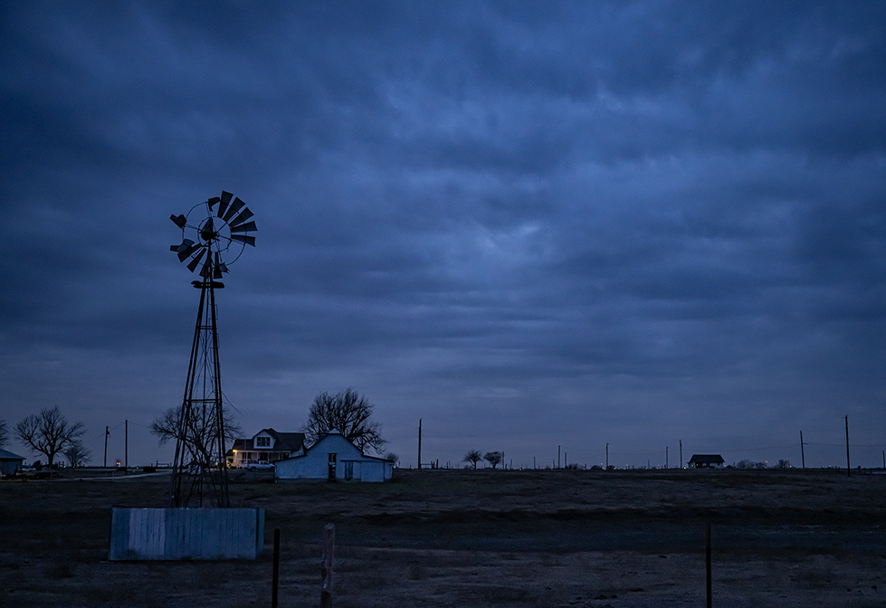 Another windmill, but one encased in cool blue light. One of many photographed, this one east of Taylor, close to Thrall. From tonight.