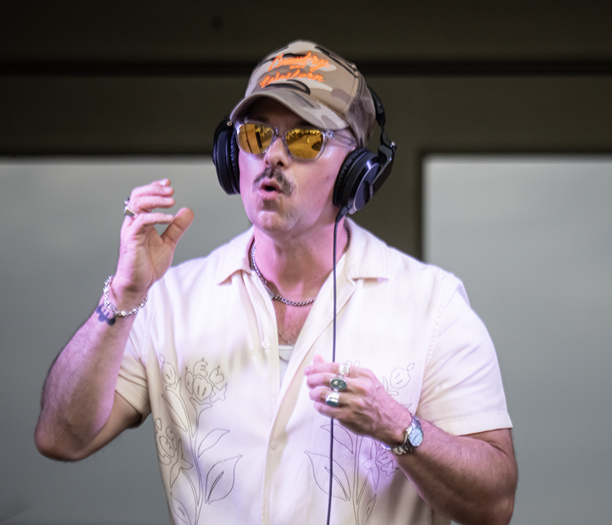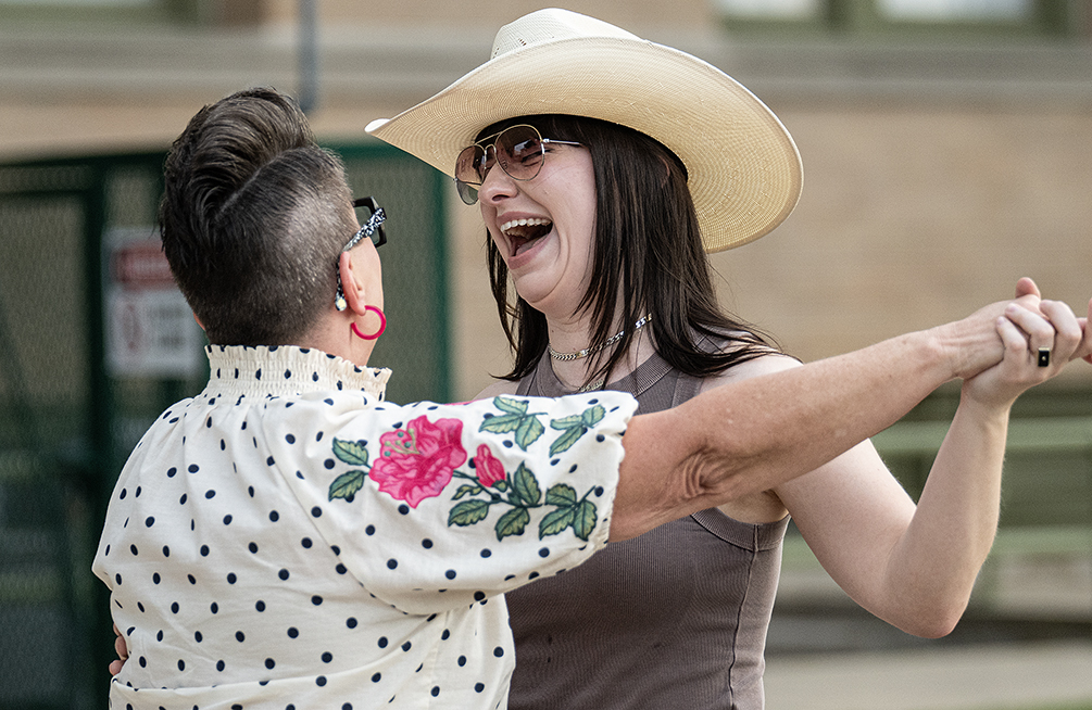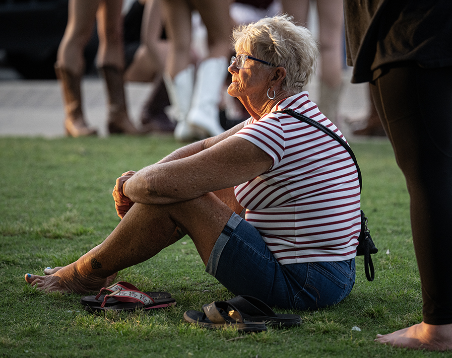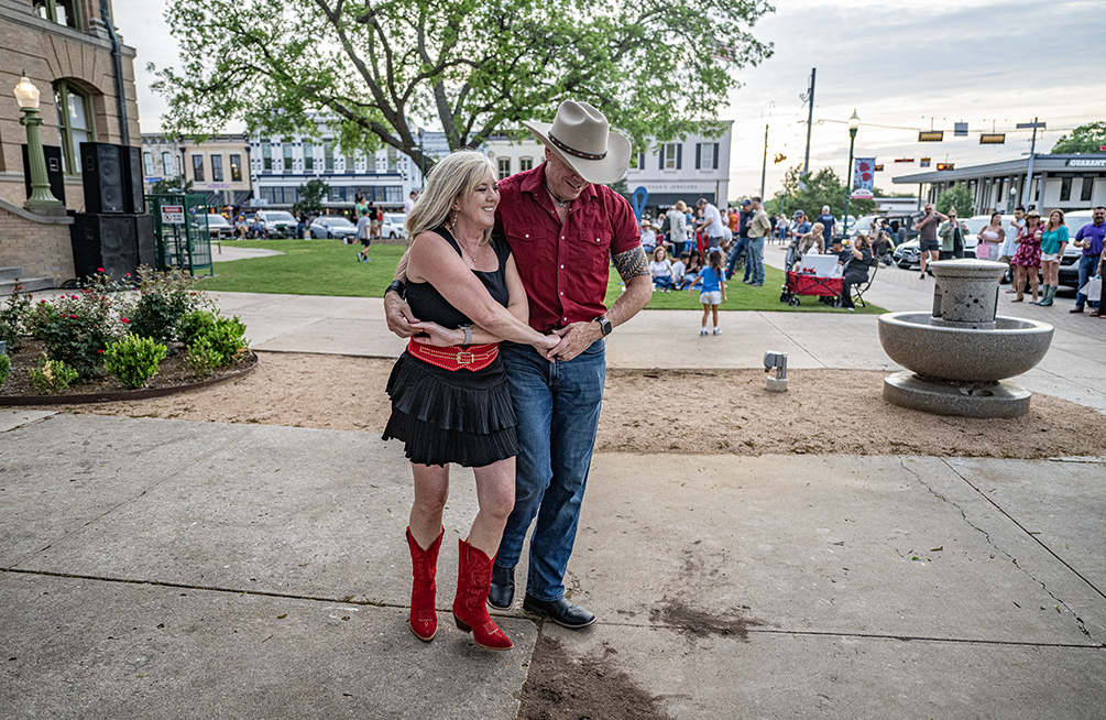Two Step Inn, a series of outdoor concerts, is being held in Georgetown’s San Gabriel Park this weekend, but Friday night visitors to the downtown square got to listen and dance to music offered by Vinyl Ranch, aka Disko Cowboy. This free event was coordinated by the Downtown Georgetown Association. Two Step Inn, with some big-name acts, is by no means free. Attendees might get a dousing of rain, too. But the light was really nice last night.