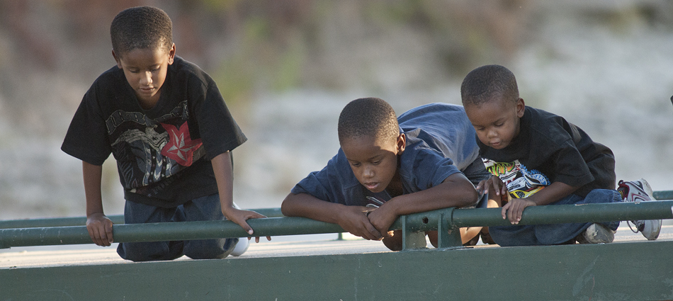 It’s been a very hot, dry summer in Texas.   Thankfully, the first day of Fall arrived today and the Shanklin family of Georgetown, Texas headed to San Gabriel River Park to enjoy the day.   Brothers Jaden, Darian, and Noah scoped out minnows and tadpoles from the bridge overlooking the San Gabriel River (there’s a bit of water in it now after a recent rain).   Along for the day were the boys’ parents Demond and Anitra Shanklin, and older brother Dajuan, 13.   Keep praying for rain.