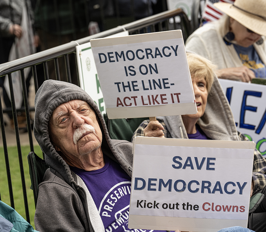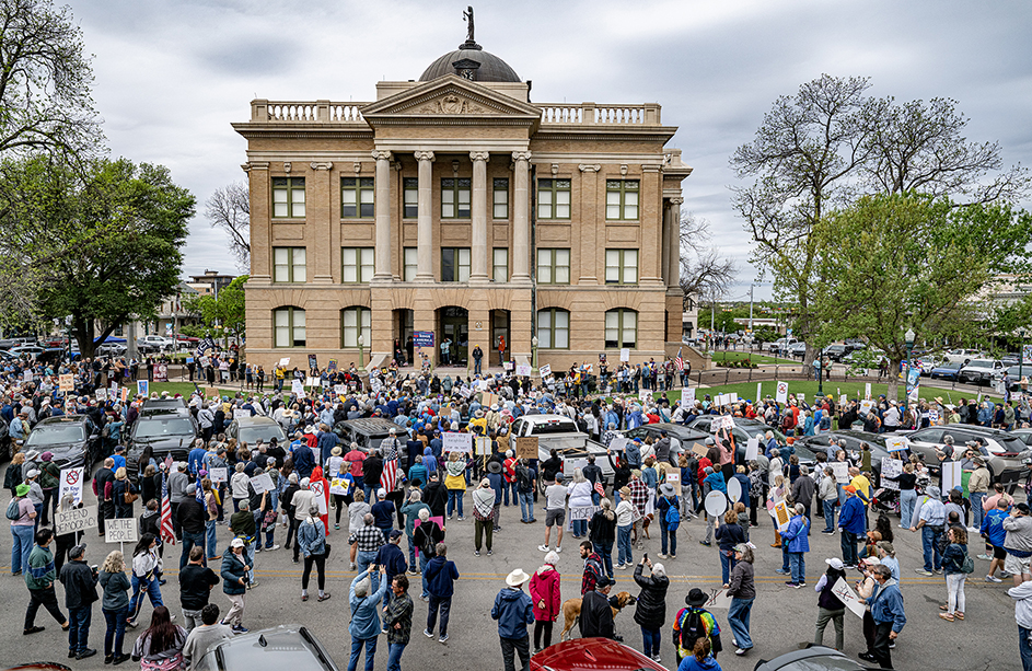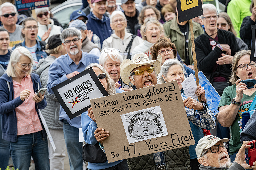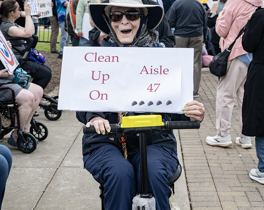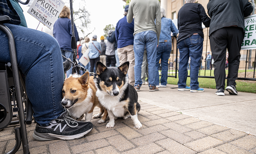 Photographs from today during Georgetown’s No Kings event held on the town square. The crowd was estimated at 700. Temperatures were nice, in the 50s and 60s throughout the event. The favorite photo is the opening one, a World War II Navy veteran who will be 100-years-old in June. Even though the career has been in photojournalism, most posts don’t offer up news events. These No Kings events, however, do garner attention.