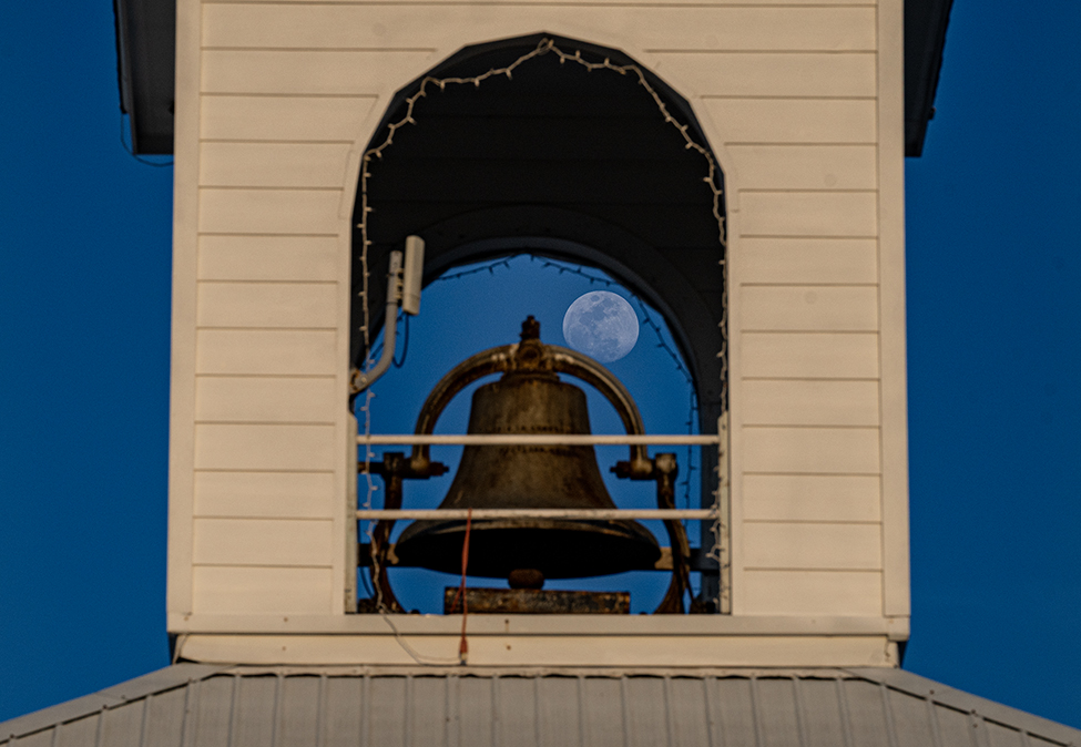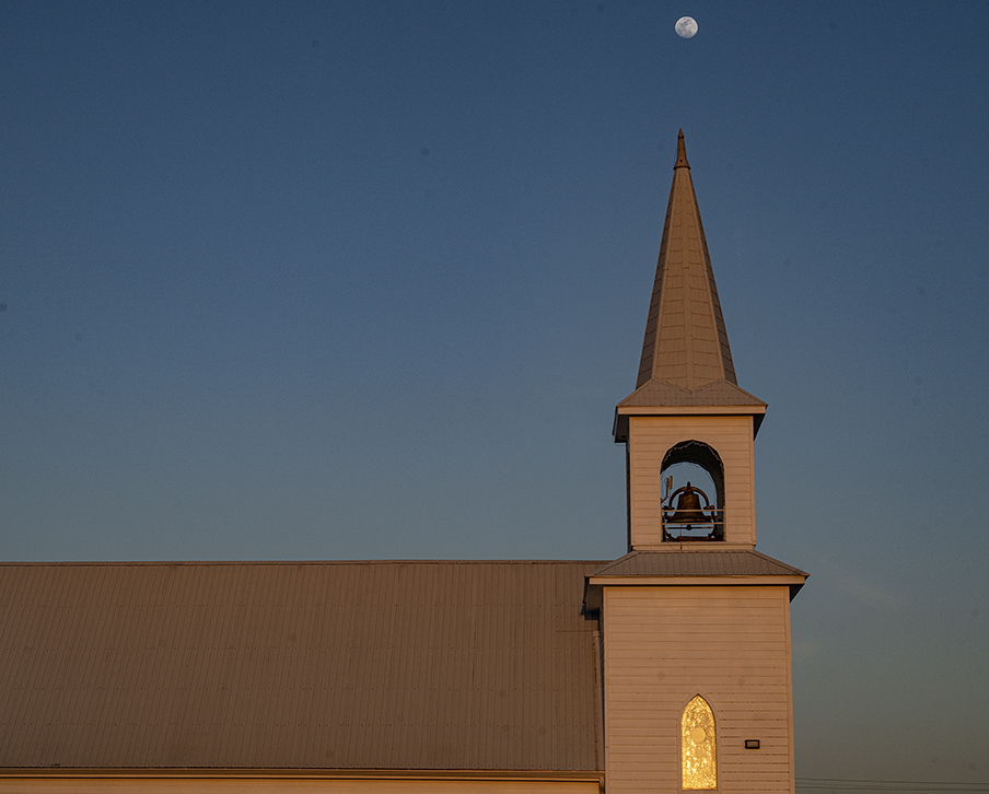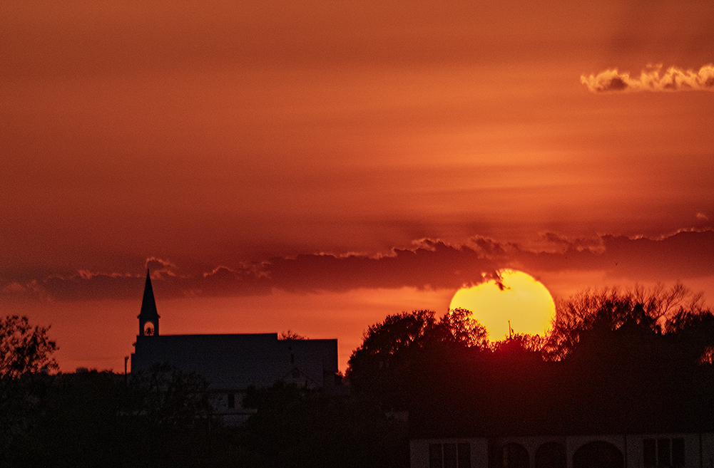 Photographs from tonight in Coupland, Texas. A Waxing Gibbous moon, at just over 95% visibility, shines over Saint Peter’s Church of Coupland. And a sunset at the same church a few minutes later. The church will hold an Easter Sunrise service at 7:15a.m. on Sunday.