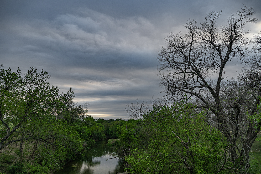 Offerings from the San Gabriel River tonight. Two of the three photographs are from this evening, as a cold front moved into Central Texas, bringing us a bit of relief from the early-Spring heat. The last one is from from a few evenings back, an overhead view east of Granger, Texas. It’s a mighty fine river.