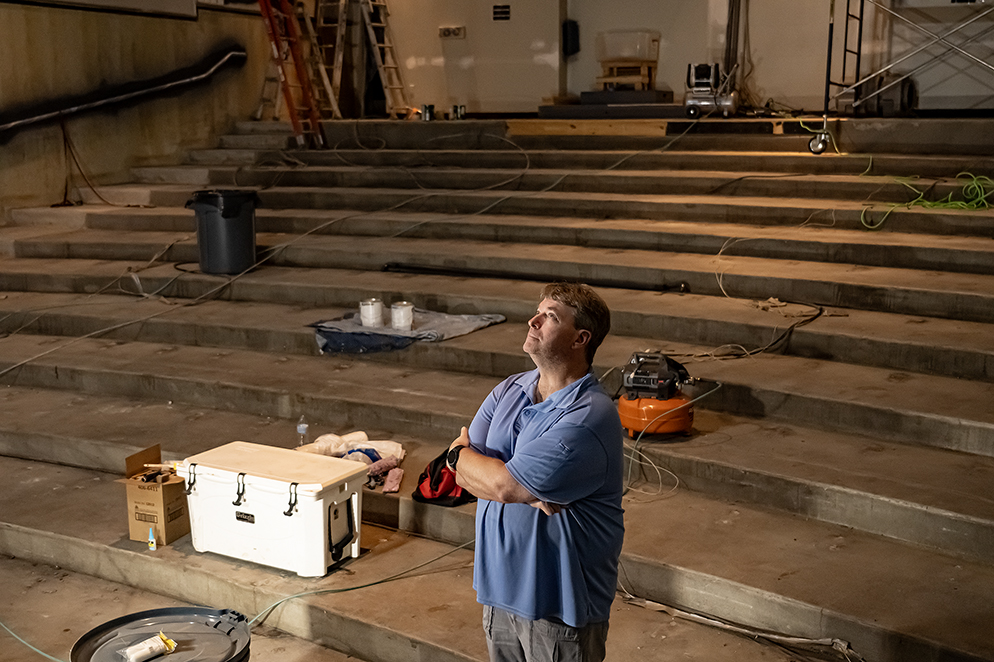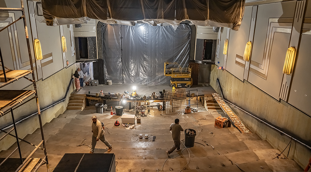 If you follow these posts, you might know that for the past sixteen years, photographs from Georgetown Palace Theatre shows are posted on this site, plus Facebook and Instagram. You haven’t seen photos for a while because the 100-year-old theater in downtown Georgetown was severely damaged during a winter storm on January 25th. A sump pump that runs underneath the structure gave way, flooding the seating area and other important things. For now, the 291-seat space is a work site as contractors begin to put the grand space back on track. The seats have been removed, the ones not damaged remain covered onstage. The gentleman in the opening photo is Ron Watson, the Palace’s Executive Artistic Director, a member of the Palace staff since the late-90s. Restoration work is costly. Insurance only covers a small portion of the $500,000 needed to make it whole again. Work continues, with a goal of brining “Jesus Christ Superstar” to the Palace stage in late-May. Fingers crossed this old photographer will be sitting in that space again soon.