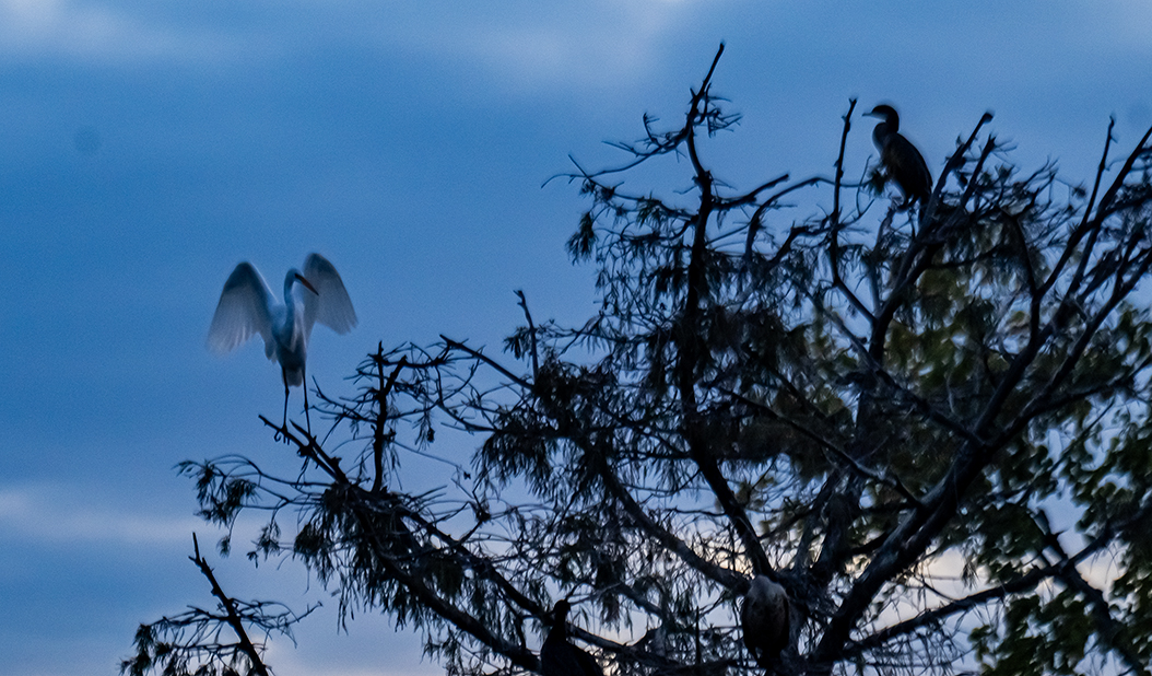 During Spring and Summer months the lake in Taylor’s Murphy Park is alive with activity as egrets bring new life into the world. After mating season each year a few egrets stay around, mingling with the cormorants and herons. It’s much quieter now, but still inspiring. These were taken this evening.