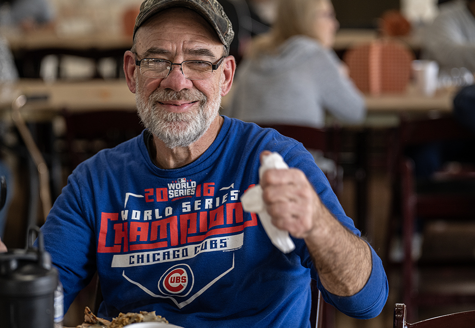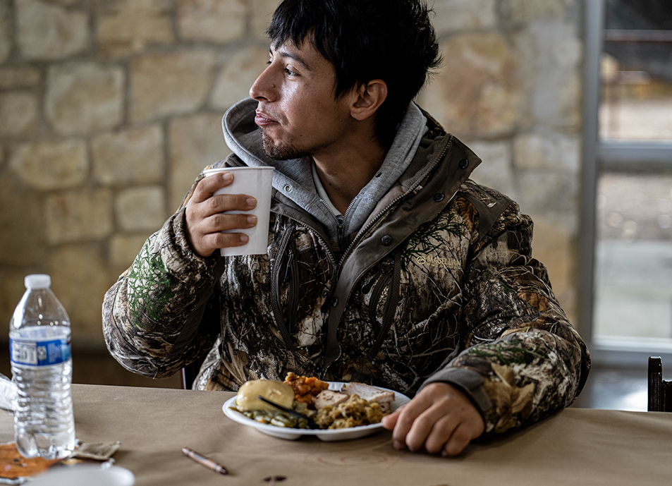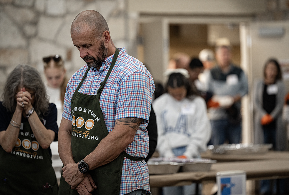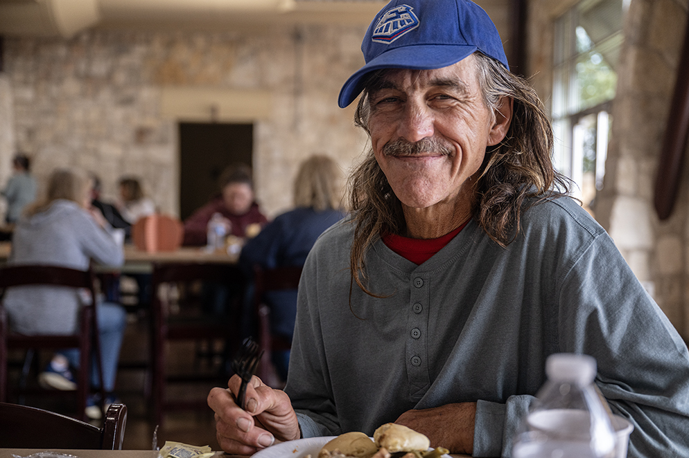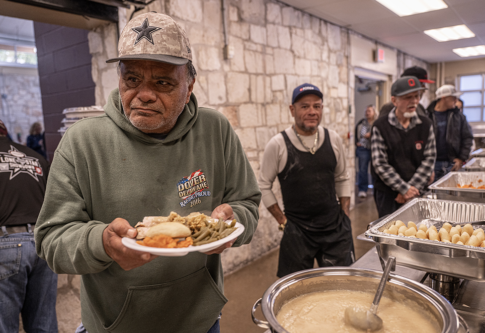 Georgetown’s Community Thanksgiving was held this morning in the Community Center at San Gabriel Park. The event is sponsored by the Georgetown Police and Fire Departments, the Georgetown Beard Club and G.W. Pyro, with assistance from a lot of volunteers. Anyone seeking a free Thanksgiving meal was welcome. A few of the area’s homeless were here today. Four of the photographs here include members of that community. Everyone, however, regardless of their circumstances, found space here. The lady in the portrait is Alycia Tandy, one of the founders of Community Thanksgiving. She’s a neat lady.