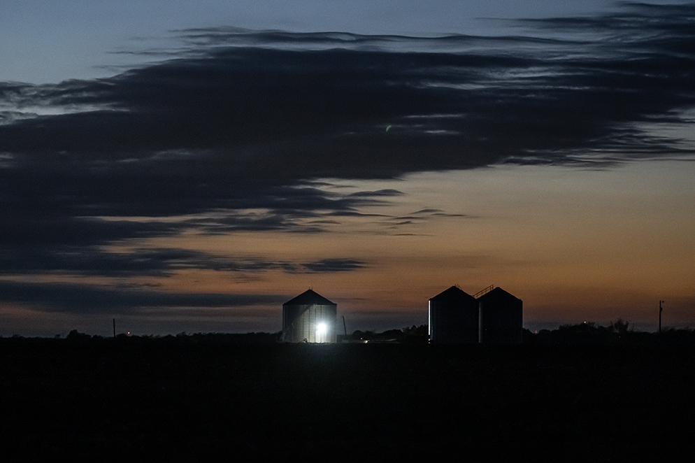 After far too much driving, not leading to much, Noack, Texas, a few miles east of Taylor, was quiet and soothing. The post begins with Christ Lutheran Church, an often-photographed church, plus two versions of grain elevators less than a mile from the church. The bins are owned by farmers who add some very nice lights on their bins. Two variations, taken a few minutes apart, are included. Have a peaceful Thanksgiving, friends.