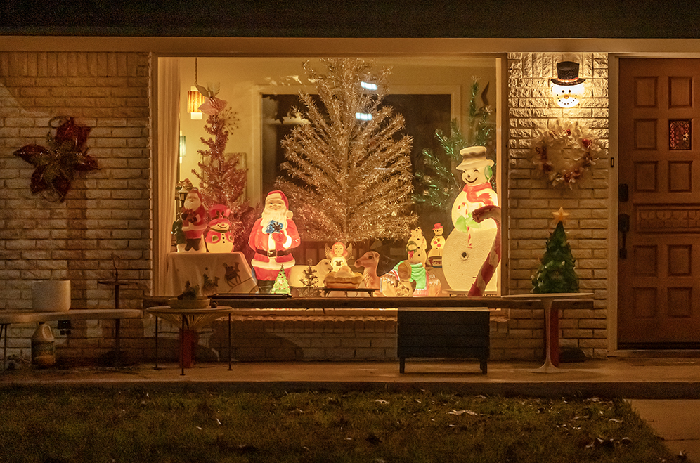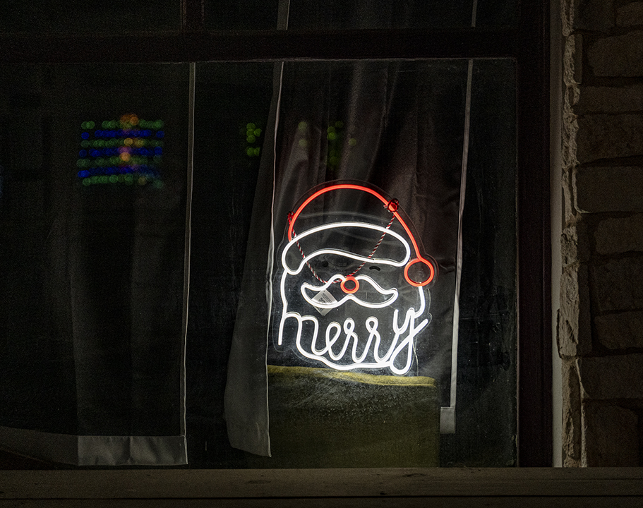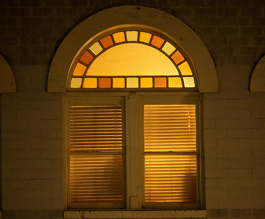 We’re putting them here tonight, beginning with a sunset at a friend’s farm near Walburg, followed by evening lights in Taylor. All photographs are from this evening. The Christmas lights displays are close to home, very well done. And one more, a beautiful window in downtown Taylor.
