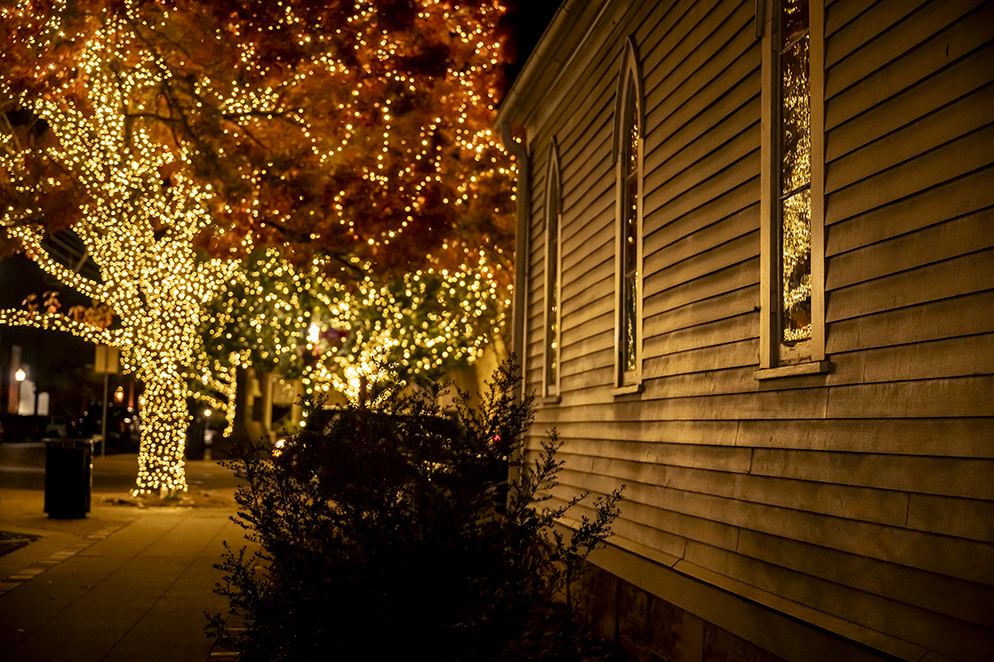 The area is around the Georgetown square is impeccable all year long, but especially during the holiday season, when the lights really shine. Photos presented were taken Tuesday night and tonight. The row of stained glass windows are Main Street Baptist Church. The other church is the facade of Grace Heritage Center, at one time Grace Episcopal Church, in Georgetown since 1881.