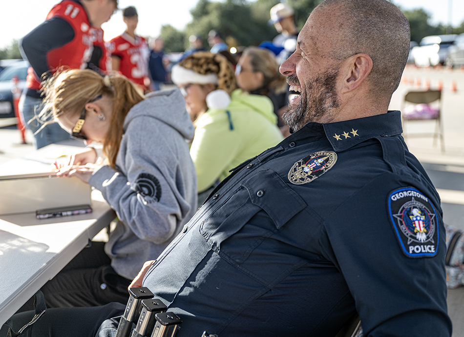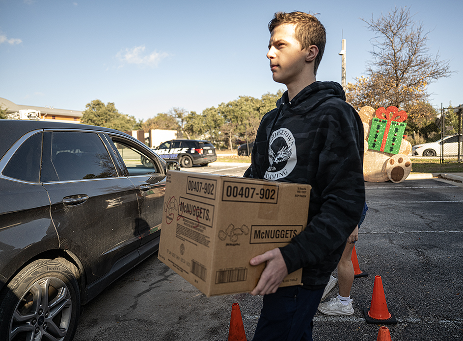 Photographs from today’s Blue Santa distribution in Georgetown, Texas. Blue Santa, conducted by the Georgetown Police Department, helps families provide for their children, something they’ve done for decades. Prequalified families are presented with gift boxes each year. For 2025, 3,100 children were recipients. In 2024 that number was about 2,600 kids. It’s been a rough year for many. The photographs include a lot of helpers, but the first six ones are kids whose families are recipients. Those children resonate.