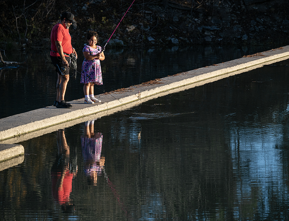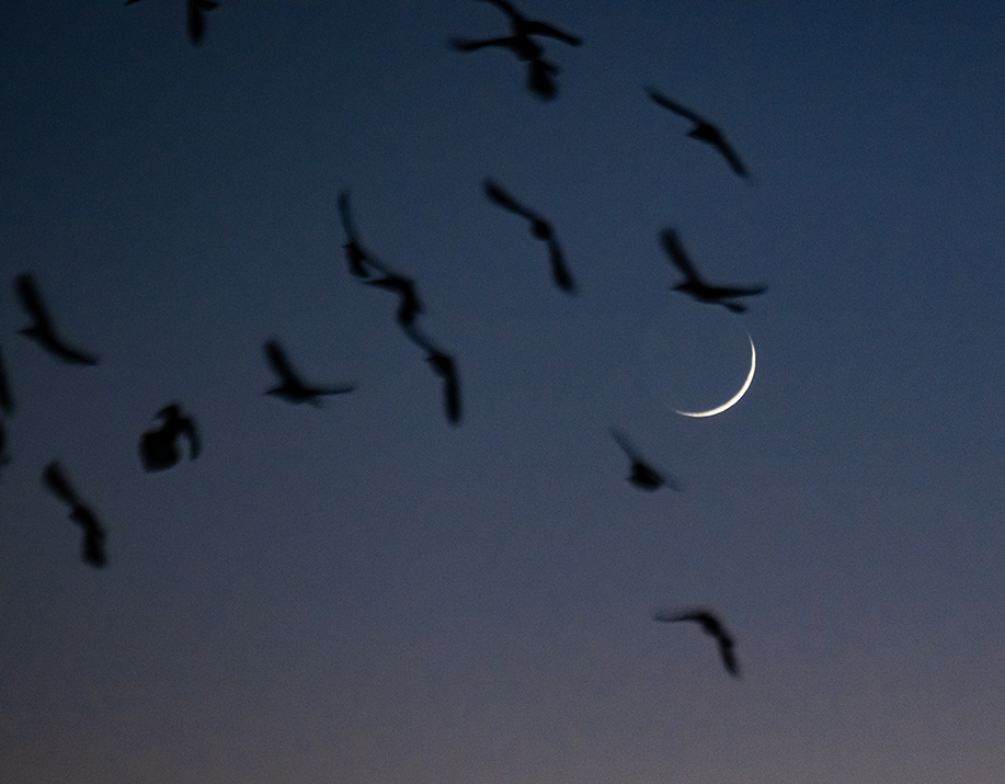 The Winter Solstice arrived this morning in the Northern Hemisphere. It might be winter, but temperatures in our area climbed into the upper 60s, perhaps a little more. The mild temperatures made it a good afternoon for a father/daughter fishing excursion to the river at Georgetown’s San Gabriel Park. The river is seen near sunset. Arriving in Taylor later, a Waxing Crescent moon, at 3.6% visibility blended nicely with a few birds.