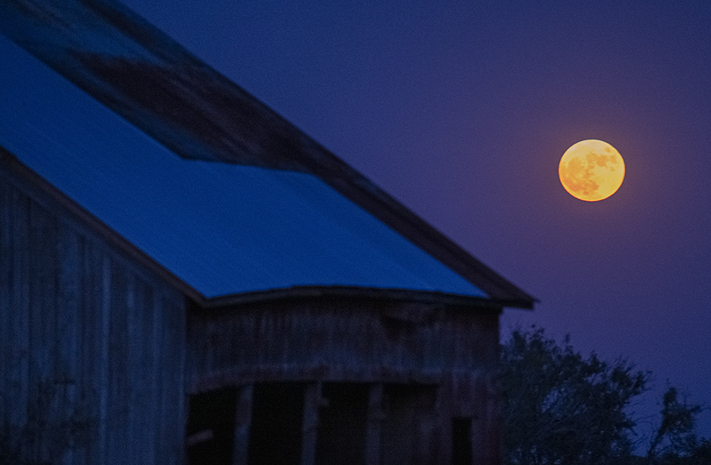 While I mostly see advantages to living and wandering out in the countryside, there are times when ambient light is hard to come by. There’s tonight, for instance, when I was photographing the Harvest Moon a few miles east of Granger. Moonrise was about 25 minutes past sunset. While there was a little light left (other than that pretty moon), it was a challenge. These are okay. The moon, of course, is almost always just fine.