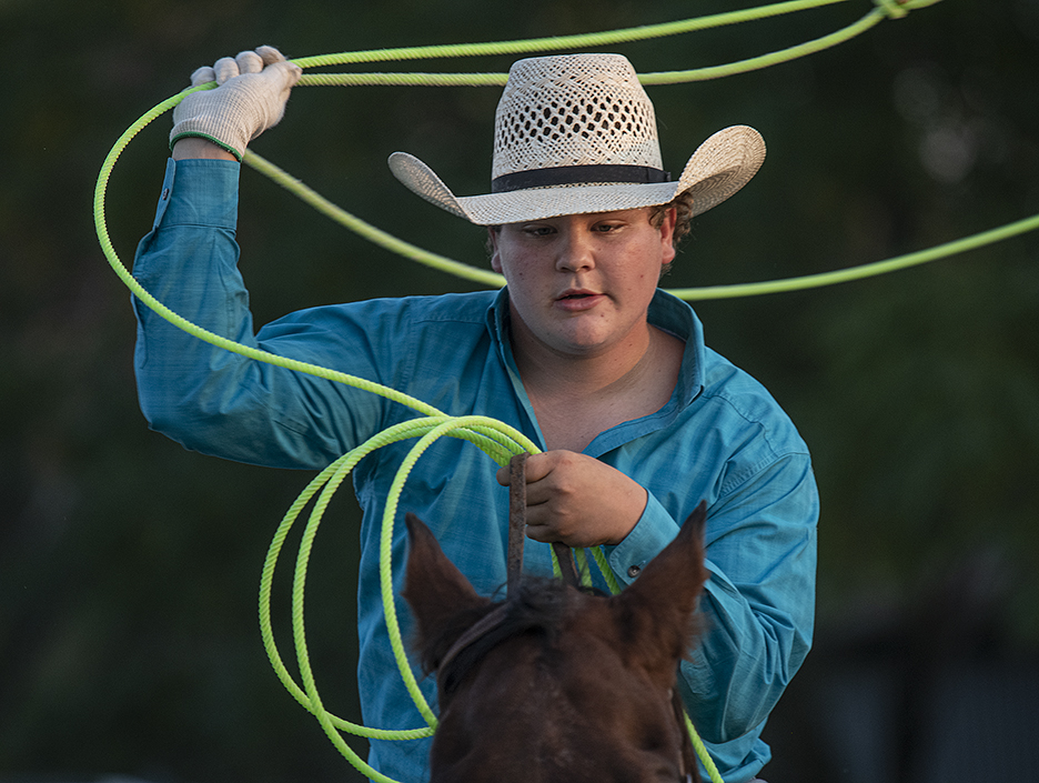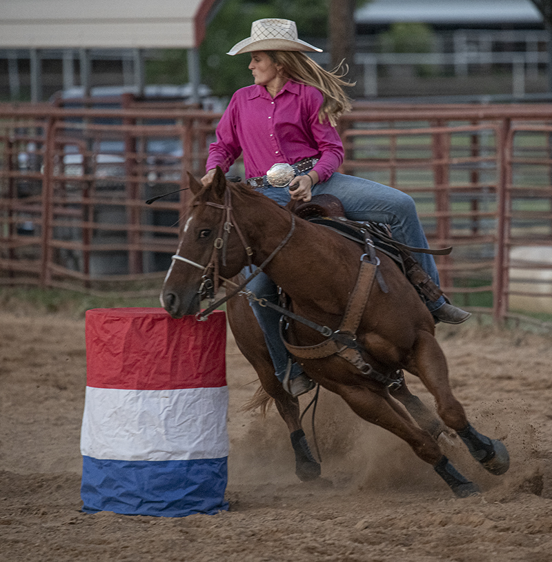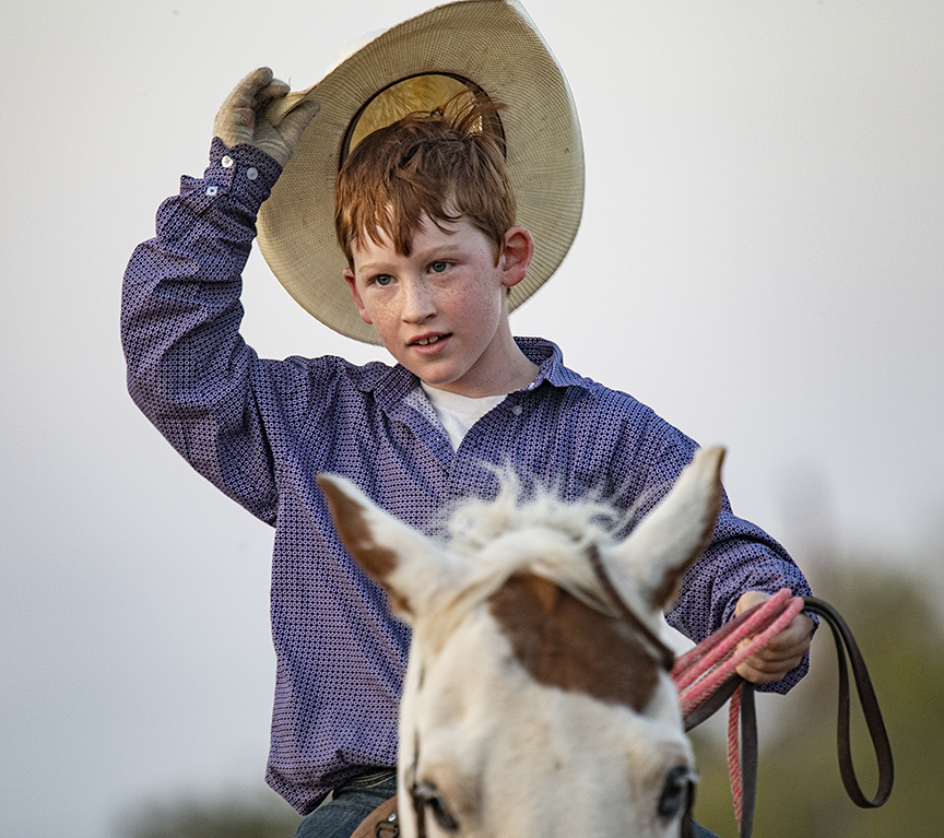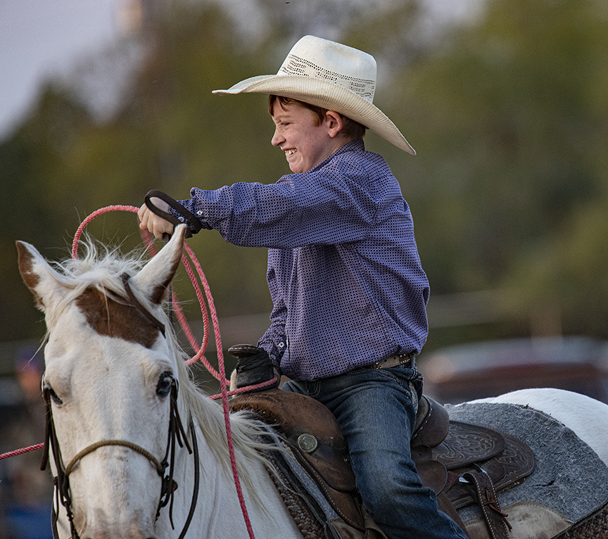 The 27th Annual Clayman Rodeo, founded by Kelly and Jim Bob Clayman, was held Saturday night at Windsong Farm in Georgetown, Texas. Unlike other traditional rodeos, this one is comprised of students who’ve studied equestrian skills with the Claymans. You won’t see things like bronco or bull riding here. I enjoyed watching 6-year-old Kyndall, this year’s youngest entrant, while she competed in pole-bending. Another photo shows her holding onto her lariat, wearing a big smile. It’s not posed, but it’s a moment I like. And there’s 10-year-old Mason, shown in three of these photos. This young fellow is a hoot! And very good at what he does, too. Other rodeos I usually photograph were cancelled this year, but not this one! This year’s event was purposely low-key, with no advance advertising. The students demonstrated roping skills, took part in pole-bending and barrel racing. I think this is the 10th year I’ve attended. Each time, I take a few action photos, but the atmosphere is what makes it work for me. It’s a truly great event.