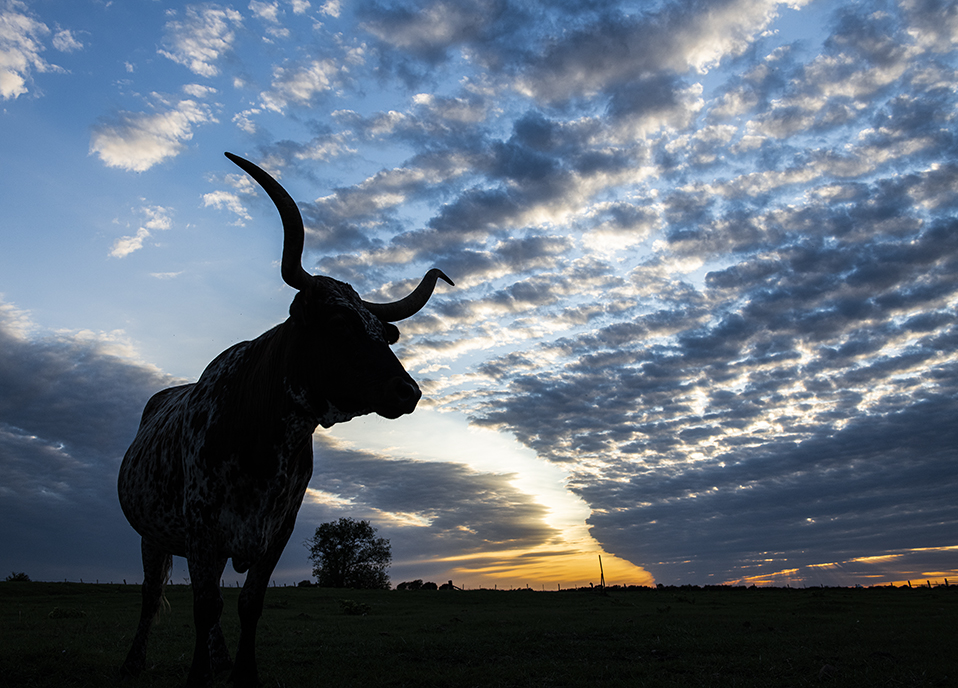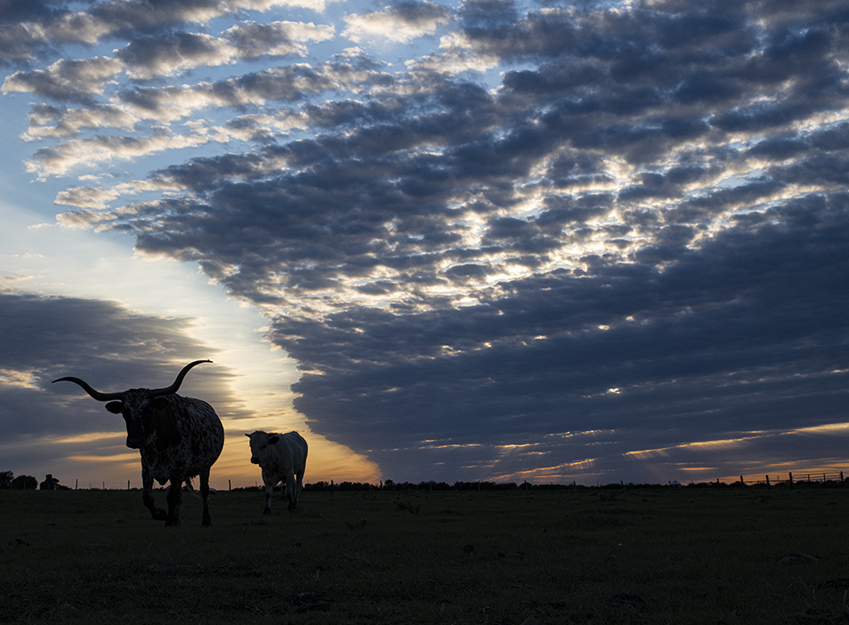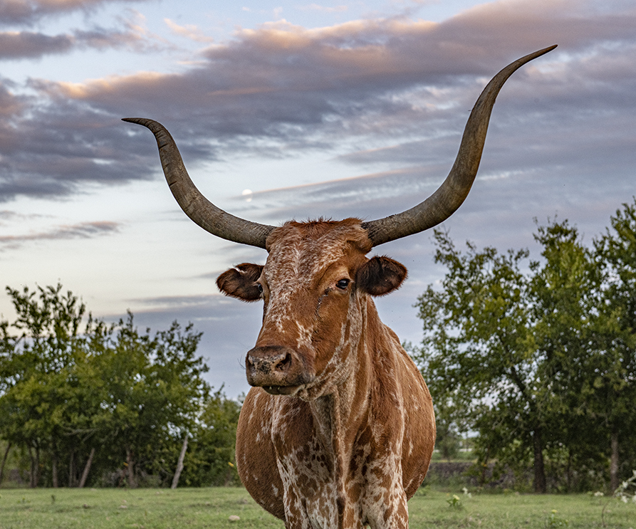 Not all Texas Longhorns are willing subjects, but some Taylor friends who’ve raised them for years have some sweet ones who don’t mind the camera’s presence. On this recent lovely Texas evening I visited with (hoping I got the names right) Crybaby, Lacy, Jinx and Rocky. There’s something about longhorns and sunsets that just seems to work. My friends have one of the most beautiful back yards in Texas.