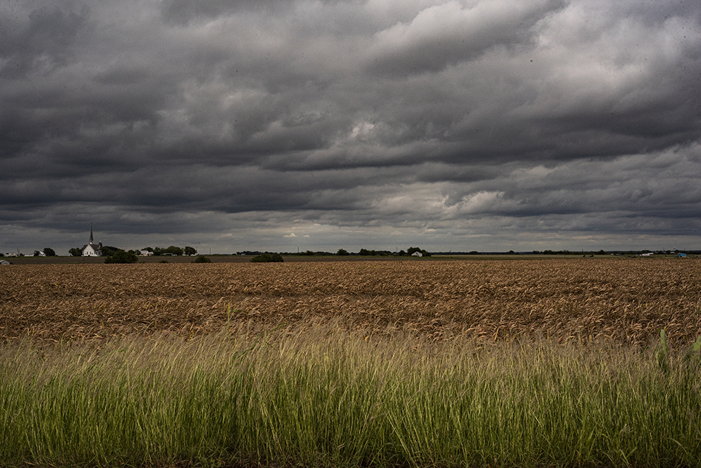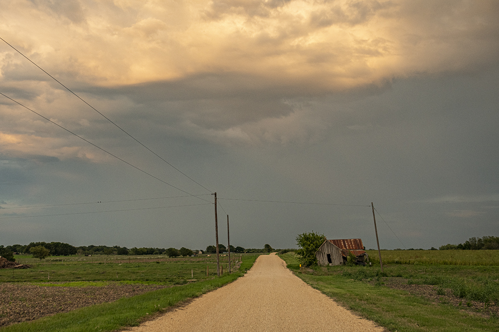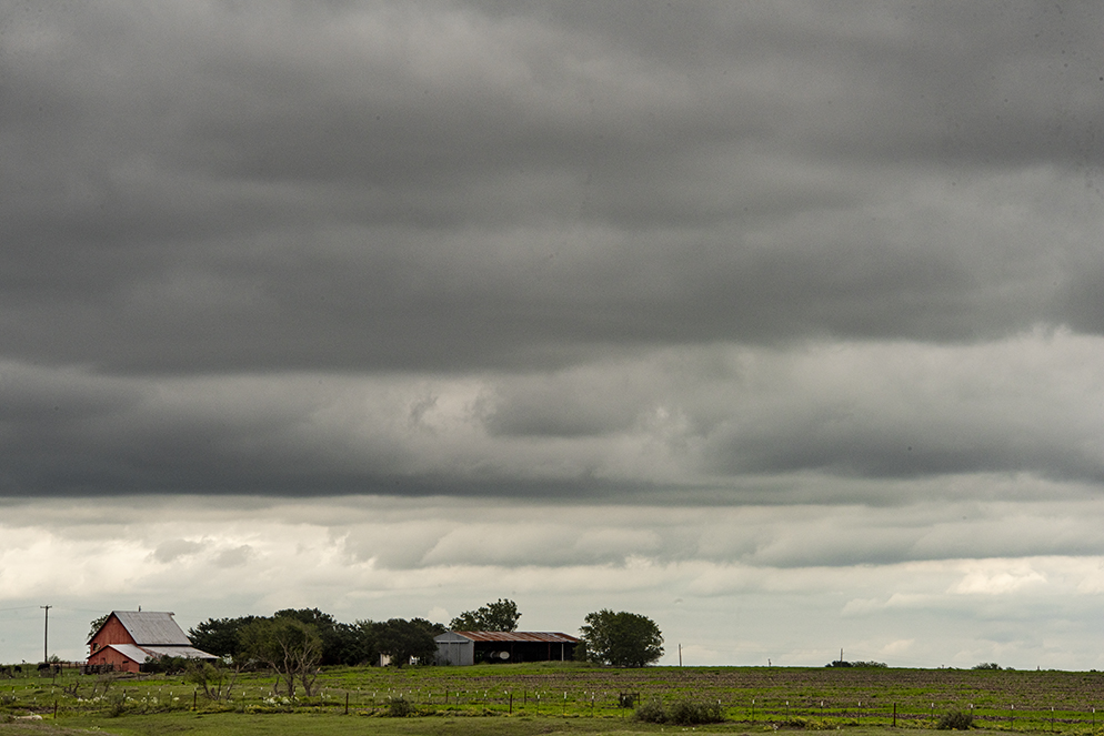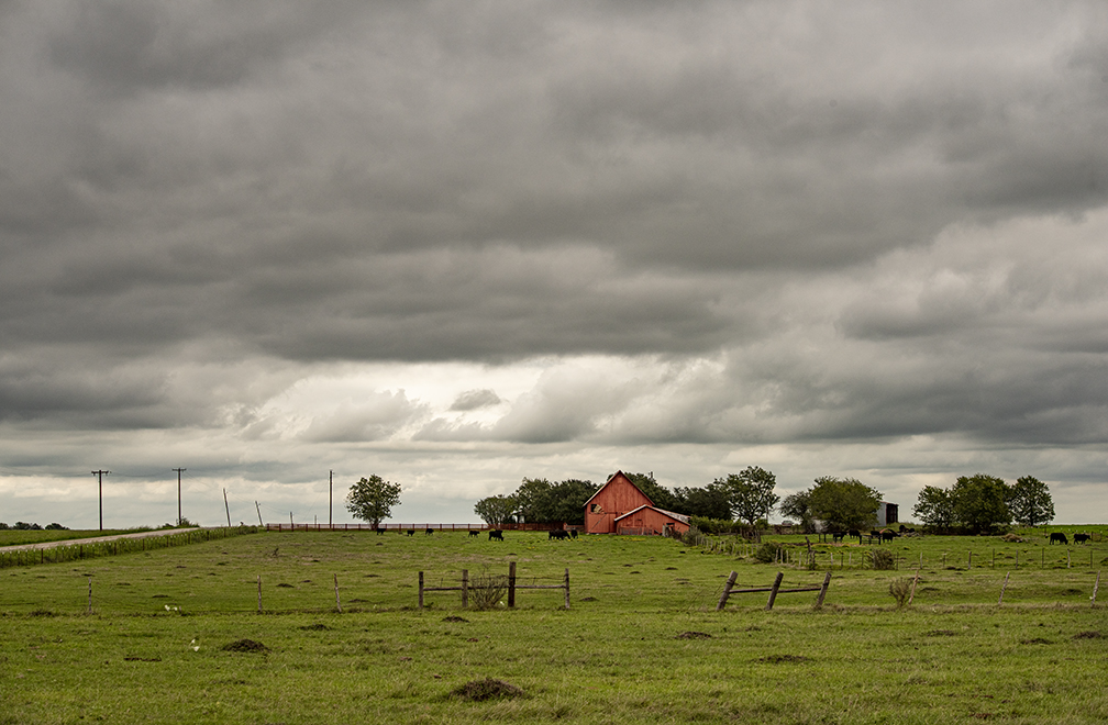 On the way back from an appointment in Austin late this afternoon, the clouds were putting on quite a show in the area north of Manor. A detour was in order to record the umpteenth photo of New Sweden Evangelical Lutheran Church. Continuing north toward home, the twin red barns, still in Travis County, prompted another stop. A photo made of these barns a few years ago hangs on the wall in our living room. While I try to hold off on repeating subject matter, sometimes it’s hard when the elements are just right.