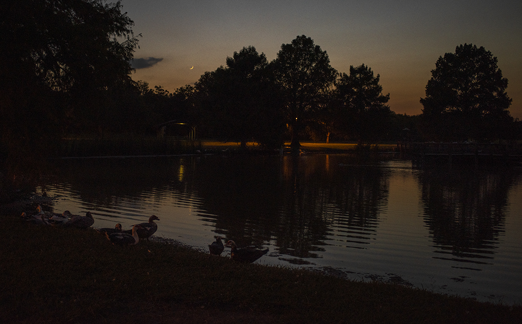 A little scene tonight at Taylor’s Bull Branch Park, a Waxing Crescent moon, just 4.1% visibility, hovering overhead. The wider photos were aided by a handy tripod. Night moves.