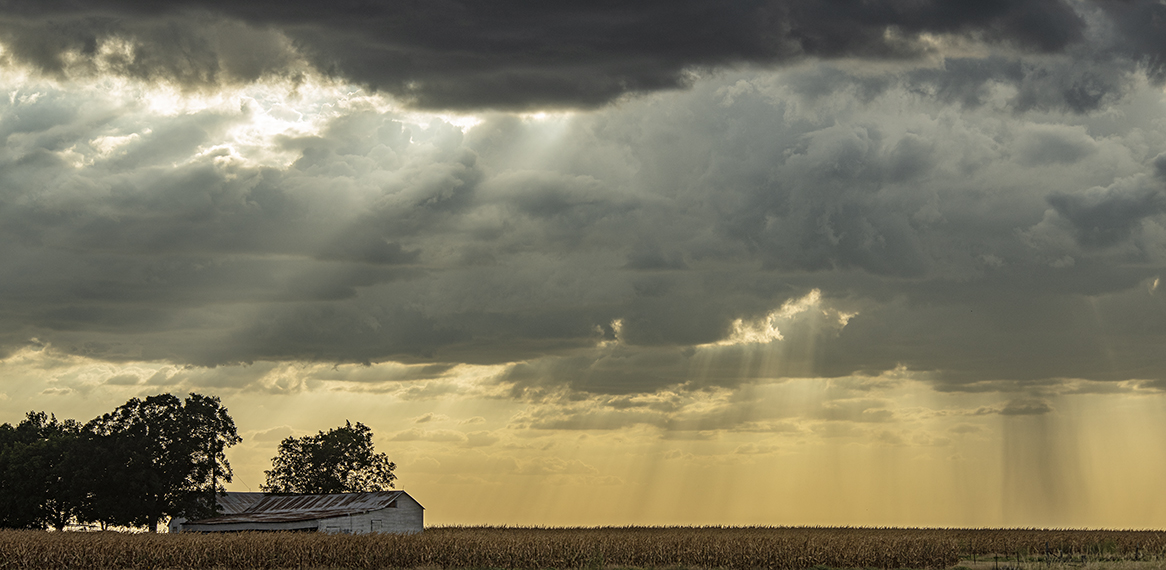 This scene along a country road outside Granger, Texas, was taken Friday evening, a while after rain moved through the area. It left behind some much-needed moisture, but may have played havoc with friends trying to finish their corn harvests. A farmer’s life can be stressful.