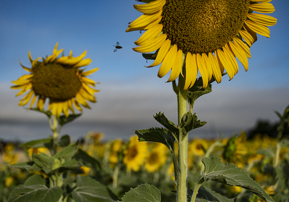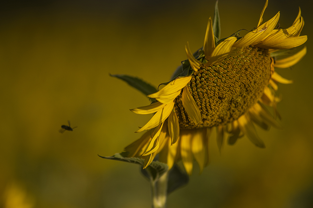 On one of my evening wanderings this week, not far from Granger, a really nice field of sunflowers appeared. While I took a few photos then, it wasn’t satisfying to be shooting photos directly into the sun. So the next day I drove back to the site, asking permission to get a little closer, but at the beginning of a day. These are from just after sunrise. The little critters were a bonus.
