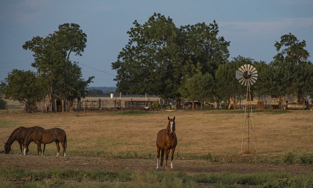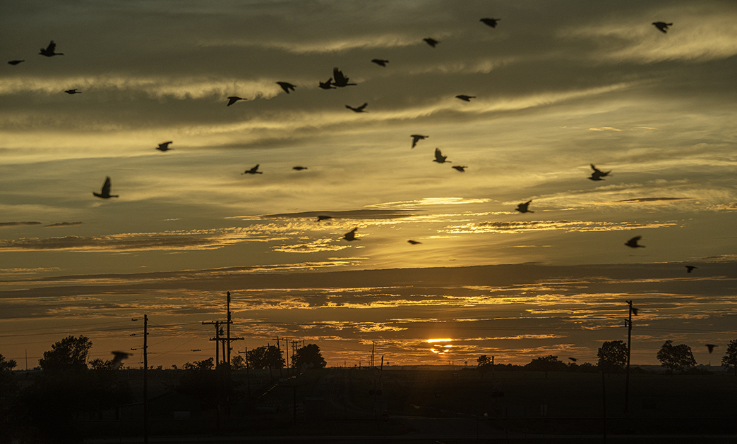 Because photo useage on social media sites is generally awful, each of these images will post individually there. Here, however, where there’s an element of control, all are together here. The first is a horse a little north of Granger that occasionally likes to preen for the camera. Golden evening light made this one worth keeping. The second photo, a red-tailed hawk takes flight in search of sustenance. Hawks are interested creatures. The final photo is a view I saw last evening near sunset, south of Bartlett. The birds were an intriguing addition. Just stuff, friends.