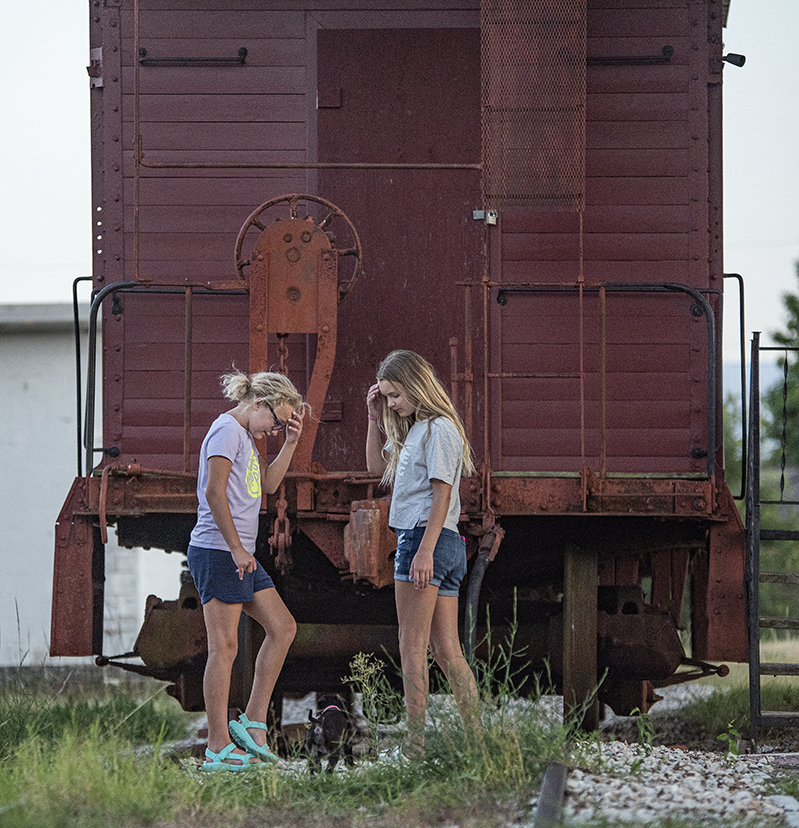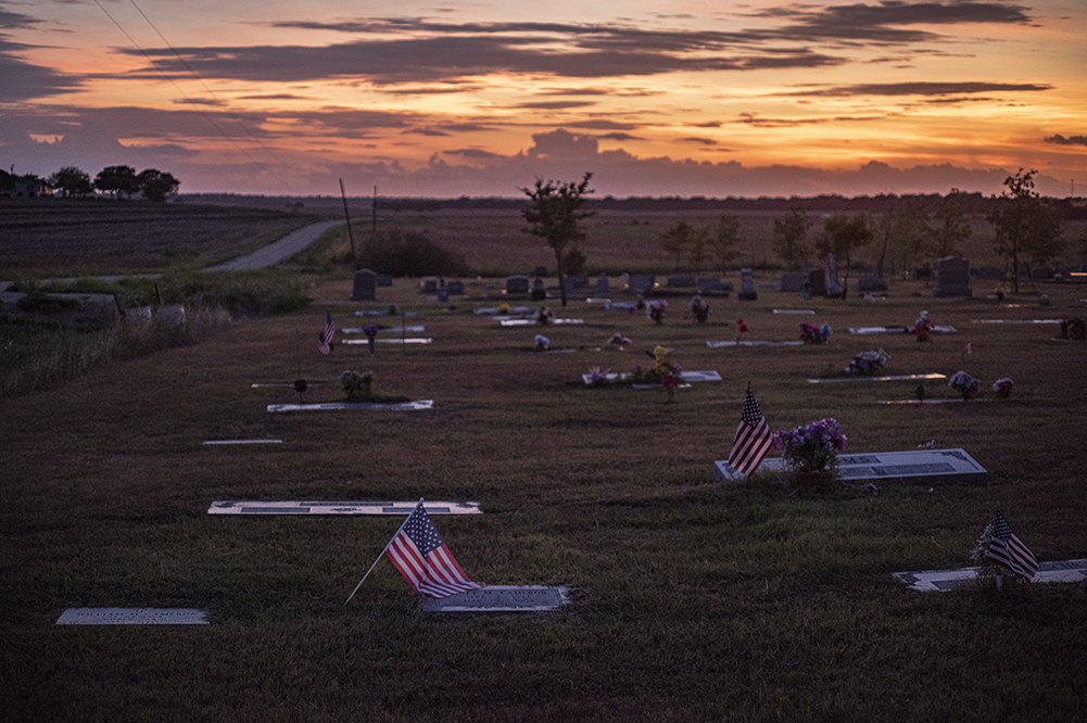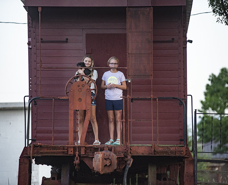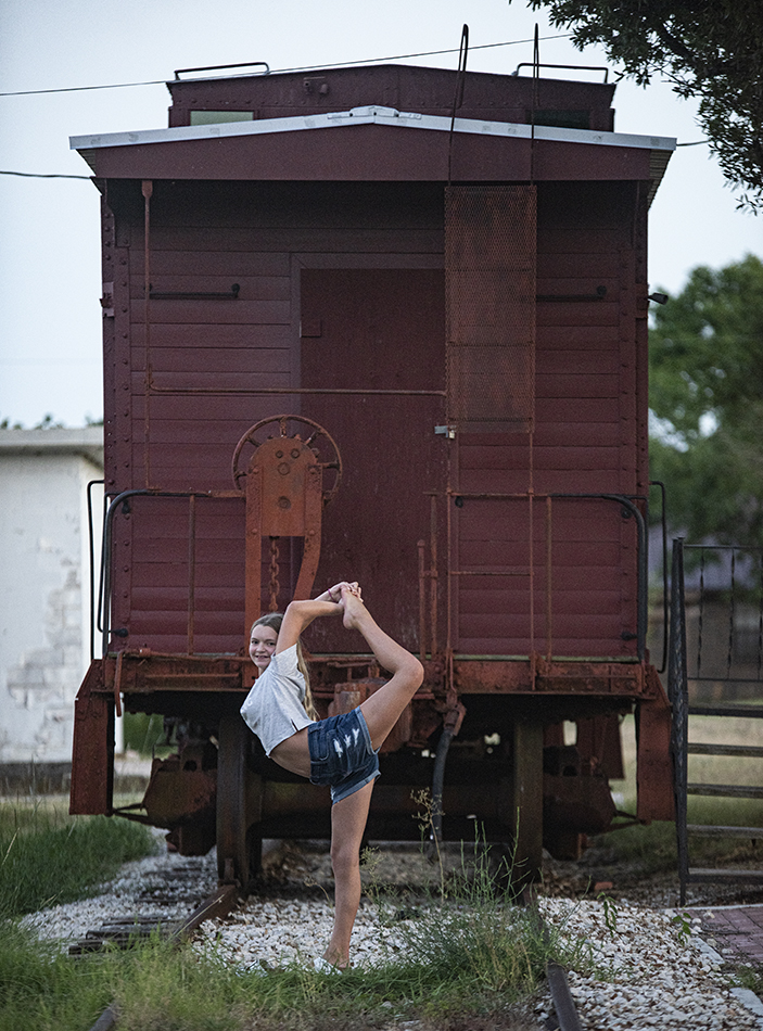 Last night I made the ten mile trip south to Coupland, Texas, a beautiful little village of just 300 people (at least until the next census figures). Though small, Coupland has much to offer. On this evening, I focused on the area around the caboose and depot, finally stopping after sunset for photos at St. Peter’s Church cemetery, adorned with tiny American flags. The community hopes to transform the caboose into a children’s museum, something that’s probably been put on temporary hold because of the pandemic. While I wasn’t expected humans, along came two moms and their girls. The girls are cheerleaders, which became obvious after a few minutes. I mentioned that normally, when people start posing, I put the camera down, but these kids were cool. As was an 8-week-old Great Dane named (I think!) Lila. It was a productive night.