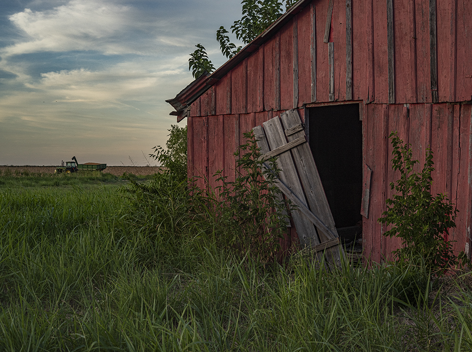 Recently, friends in the middle of their corn harvest found another barn they thought I’d like. They were right. This one is a little east of Taylor. You can’t see it from the highway. You travel down a dusty trail to get there. As you might know, I like to visually explore some of my subject matter. Barns lend themselves to that. The farmhouse where my mother was raised in northeast Texas eventually became a barn. After the passing of my maternal grandparents in the early-1960s, my great-uncle Harry, also a farmer, took the old house apart board by board, putting it back together on his farm, but as a barn. I am enamored by barns.
