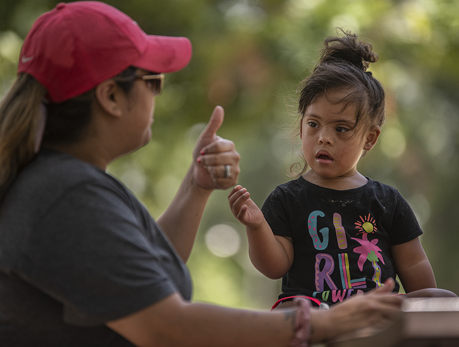 So I’m sitting in my car this afternoon, reading an e-book at Georgetown’s San Gabriel Park while finishing a bag of chips, keeping an eye on park activities. It wasn’t a certainty I’d photograph anything. In the distance, however, something got my attention. A grownup and a toddler, sitting under the shade of an oak, actively-engaged, prompting me to grab the cameras. Mom was more than happy for photos. Two-year-old Skyla and mom were honing their sign language skills. Skyla was born with Down syndrome. Although she has good verbal ability, sign language is another way to communicate. And connect. It turns out mom and daughter had already been at the park for two hours while Skyla’s brother played a little basketball. No worries. Skyla and mom had things covered. For almost 50 years, this defines what I mean by community journalism. Through the years, however, photos of children have not been in favor with newspaper editors. Too soft, they say. Not newsy, they say. You know what? If they bothered to listen to their readers, they might redefine their thinking. Just look at Skyla. It’s not just about cute photos, friends. It’s about everyday life.