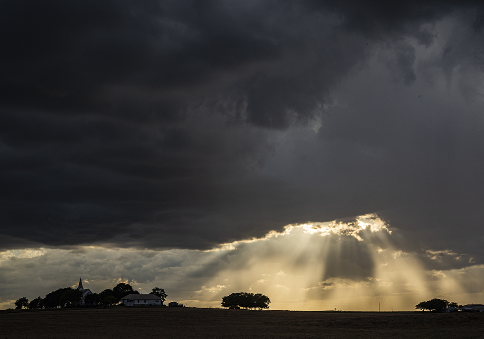 Honestly, I try to hold back on posting photos from Prince of Peace Lutheran Church, in Wuthrich Hill, Texas. The setting, however, is divine. We had light rain tonight on the Blackland Prairie. While it wasn’t much, the skies were just right.