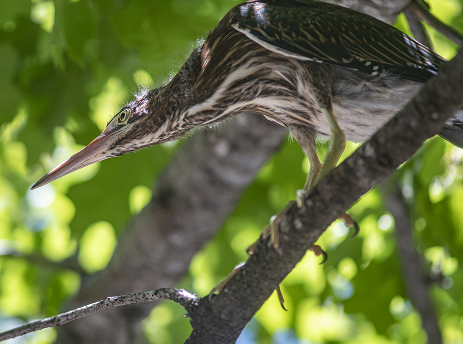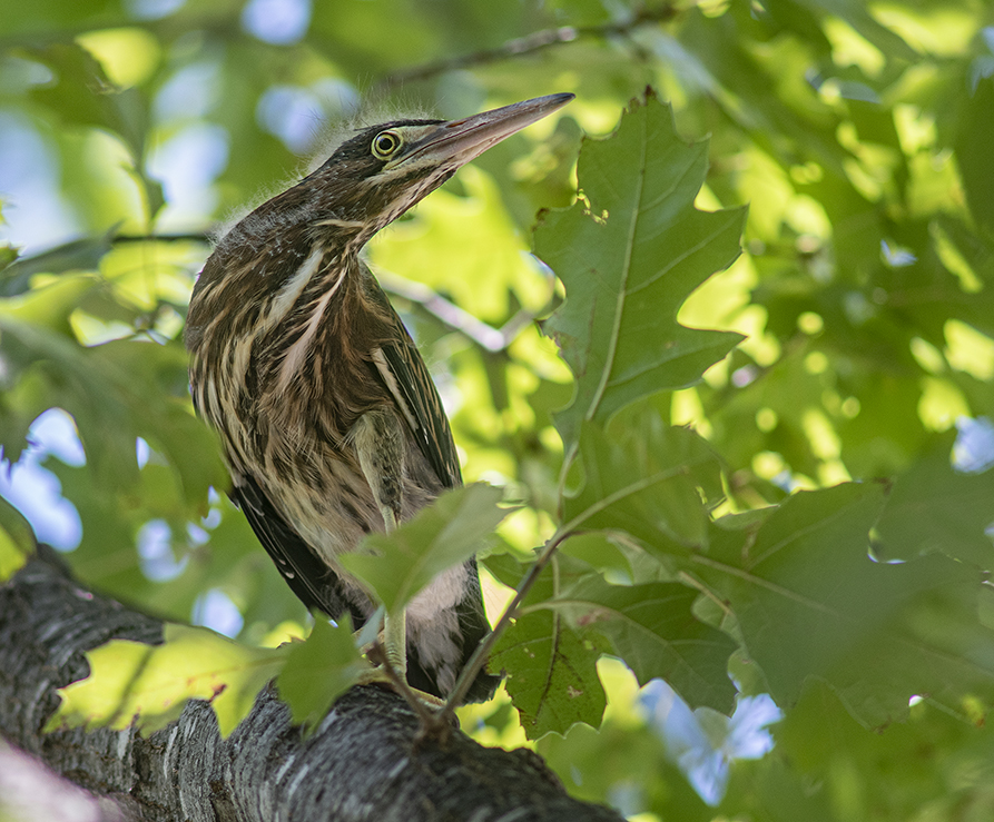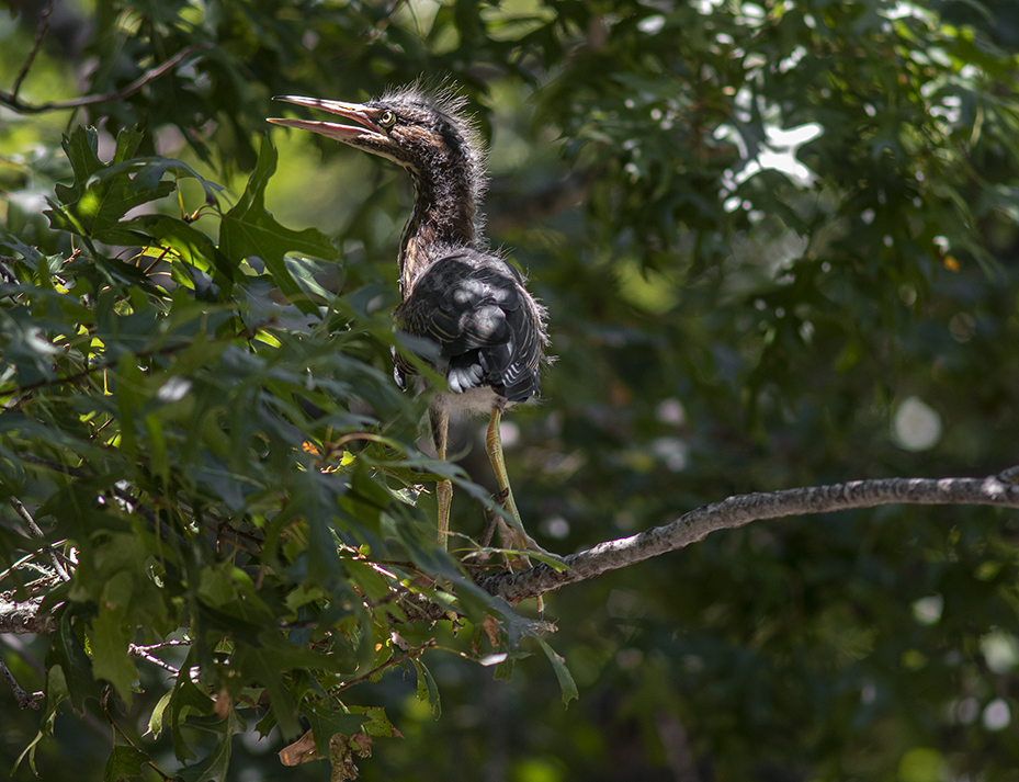 Most of the bird photos I post are from Taylor’s rookery at Murphy Park, or ducks and geese at Bull Branch Park, all birds are intriguing. For the last several years, a small group of trees on the downtown square in Georgetown have become temporary homes for Green Herons, somewhat smaller cousins to Great Blue Herons. My assumption has always been that herons (and egrets) prefer to stay close to water sources. The San Gabriel River is a few blocks away, but it still seems an odd place for these little beauties. Unlike the rookery, you really have to hunt to see these herons. The nestle in the trees and blend right in. These were taken last weekend while finishing up an assignment. All birds are neat.