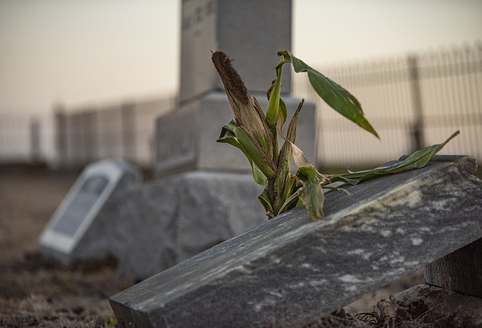 Cemeteries. How do you see their function in 2020? I have been fascinated by them for decades. Walk through one and see the history of families. These photos were taken recently on a visit to the Bartlett City Cemetery. People born in the early 1830s are laid to rest here. In the late-1800s, I noticed, there were burials for little children. Far too many, but sadly, mortality rates were higher then. From this visit, however, I was fascinated to see a single corn plant growing by a gravesite. Since this is farm country (so far), I can only surmise the loved one’s family pays tribute with this planting. Many of the gravesites are are in poor shape. Are there family members who can keep the cemetery intact? I don’t know, but wish the best for this resting place on the prairie.