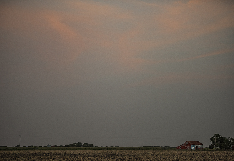 Although I’ve photographed this barn before, it recently merited another document, the Texas skies dimming above, a recently-harvested field below, made it worth another visit. Texans are a showy bunch, but that’s fine by me.