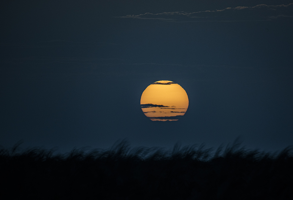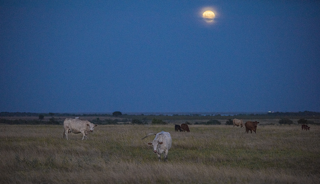 We still have evening haze because of Saharan dust. I did manage to eek out a photo of tonight’s full moon, a Buck Moon. With cows.