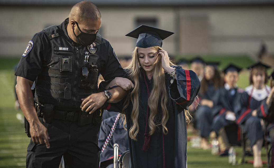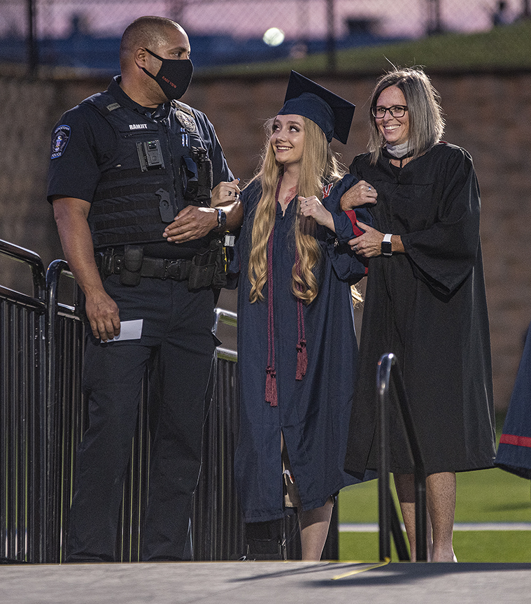 Last night, a hot and humid evening, I attended commencement for approximately 400 East View High School seniors at the school district’s Birkelbach Field in Georgetown. The graduates were seated well apart, many of them wearing face masks. Each senior was limited to inviting five family members or friends. Even though the academic year was cut short, this tradition, though different, remained intact. Whenever attending events like this, I keep an eye out for something special. Last night it was a graduate named Jazmine. Earlier this year, she told me, an auto accident left her with limited mobility. She arrived to her seat with the aid of a walker, but wanted to make the walk to receive her diploma. There to help with that were a Georgetown police officer, Richie, and an East View teacher, Leah. We’ve seen quite a lot recently about cops doing awful things. And some of them do. But then there’s guys like Richie. Remember that before painting others with broad brushes. Congratulations to the class of 2020, wherever you are.