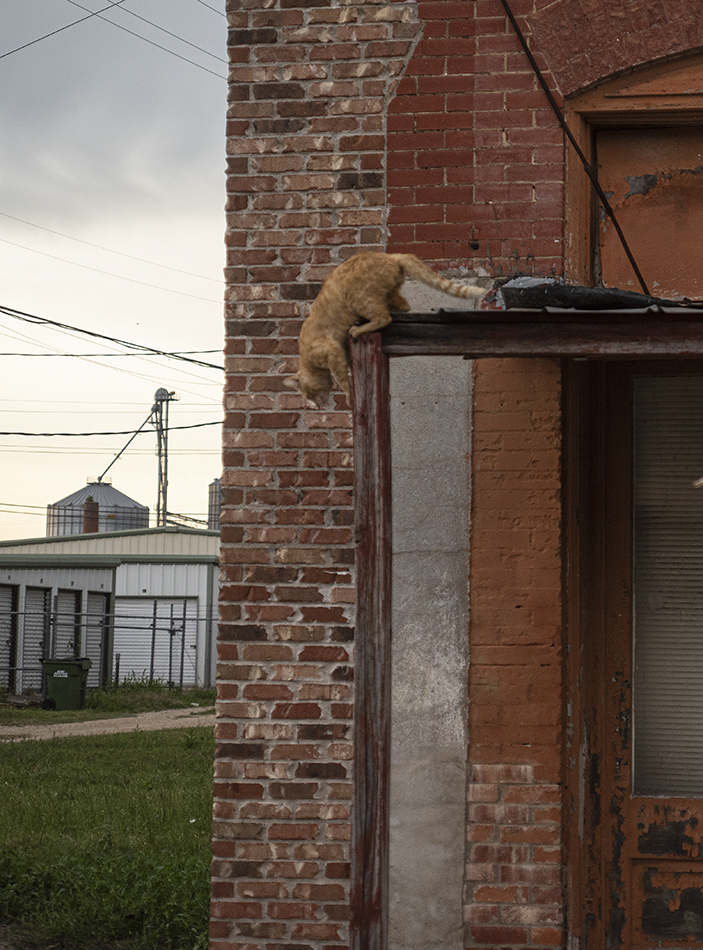 As I parked my car in Granger this week, it was interesting to spot a cat perched on the roof of one of the town’s vintage structures. As I quickly grabbed a camera, that rascal made eye contact. And made haste. These four photos were made in a span of maybe 5-10 seconds. Apologies for the lack of crispness in the images as they were made with one of my very ancient lenses, made well before the introduction of autofocus. Nevertheless, I liked what was happening and present them to you here. Many awful things are happening in the world right now. As a journalist, I keep up with those, but use photography to provide a bit of stress release. It’s worked for almost 50 years. Why stop now?