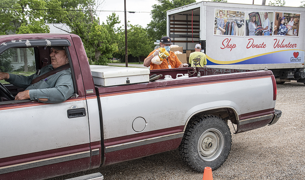The Caring Place, in Georgetown, has been assisting families since 1985. Food for Friends, under the guidance of Joyce White and her many helpers, has been serving hot meals every Friday for eleven years. The pandemic, however, has temporarily sidelined Food for Friends. It’s nice to see The Caring Place reaching out beyond Georgetown, as they did this morning at Bartlett’s First United Methodist Church, where The Caring Place and members of Food for Friends were distributing food to those in Bartlett and Granger. 70 families, including Geneva, pictured in the opening photo, were served in Bartlett. 12 families were helped in Granger. In these tough and scary times, it’s wonderful to see two fine groups coming together for the common good. The Caring Place will be on hand every second Wednesday of the month from 10am-noon at Bartlett First United Methodist Church.