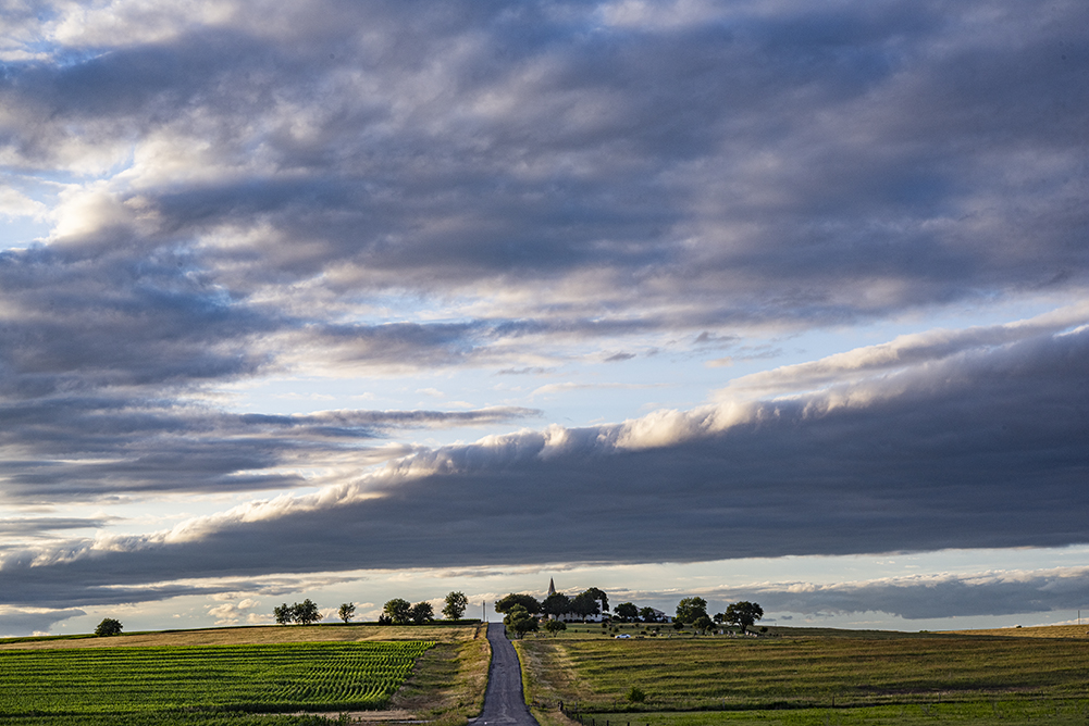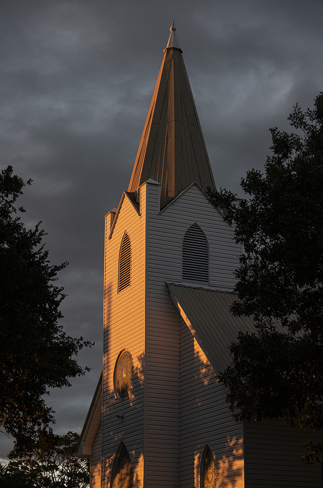 These were taken a few nights ago around Prince of Peace Lutheran Church, in Wuthrich Hill. It’s easy to see how “hill” became part of this community’s name. And the church sits right up there on top. Since returning to Texas in summer 2009, there’s no telling how many times I’ve photographed this place. For those growing weary of these observations, my apologies. Honestly, there are many returning subjects on this site. Keep in mind, friends, this photographer doesn’t wander too far from home. When these were taken, the remnants of a rain shower had moved on, leaving us with some wonderful light and Texas skies. And a nearby longhorn. In the tighter church photos, it’s instructive to observe how the sun’s rays react near day’s end. The two vertical images were made perhaps only ten minutes apart. Note that I can’t paint, or draw worth a lick, but light impressions are just dandy.