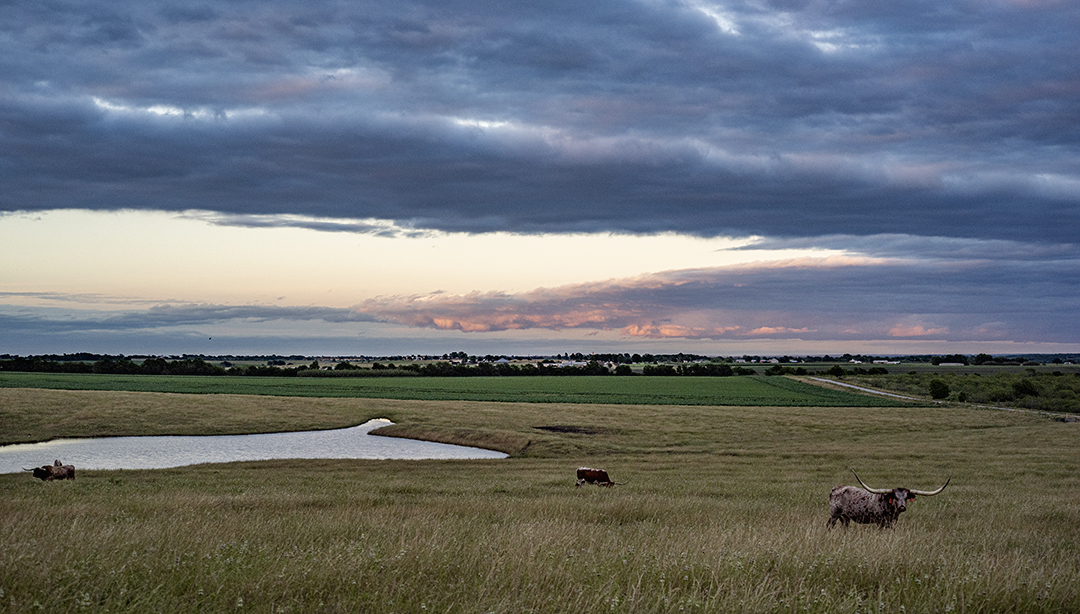 These three photos were taken a few nights ago after a bit of rain moved through the area east of Taylor, Texas. The quality of light, and how it falls on the landscape after a stor, is soft and sweet. Corn, wheat and cows.