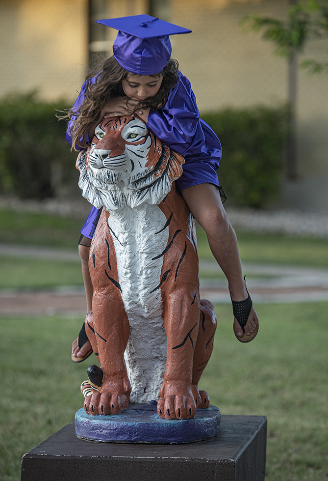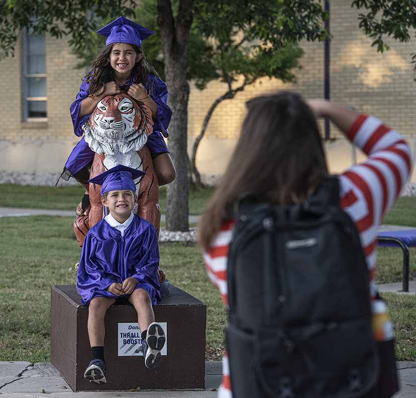 Earlier tonight, a massive sinus headache, exacerbated by seasonal allergies, led to my usual therapy: heading out into the countryside with my trusty cameras. When passing Thrall Elementary School, however, I circled the block to record what you see posted here, 6-year-old twins, Maven and Eli, getting their kindergarten graduation photos taken by a family member in front of the school. The school district’s mascot is a tiger, one I happen to like. My high school mascot, in Texarkana, was a tiger, too. All over the country, students have had their school years cut short by something out of their control, but families like this will persevere. And eventually thrive. Mom and dad were very nearby in case the little folks got too rambunctious. Plans for those rural landscapes were put on hold tonight. For an inspiring reason. When you see posts singing the praises of community journalism, I mean this.