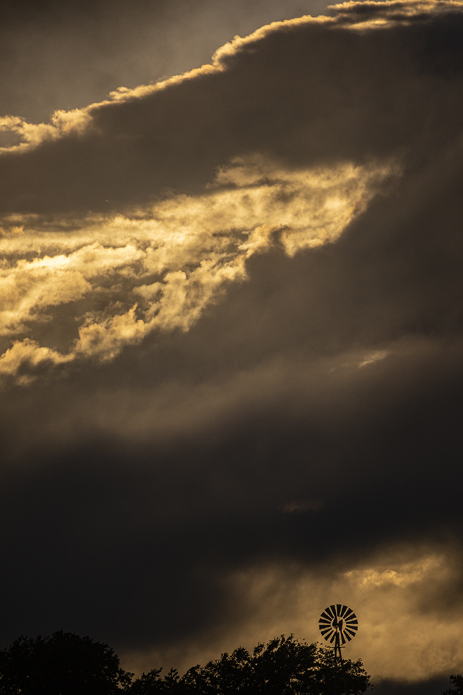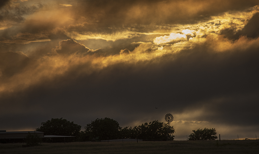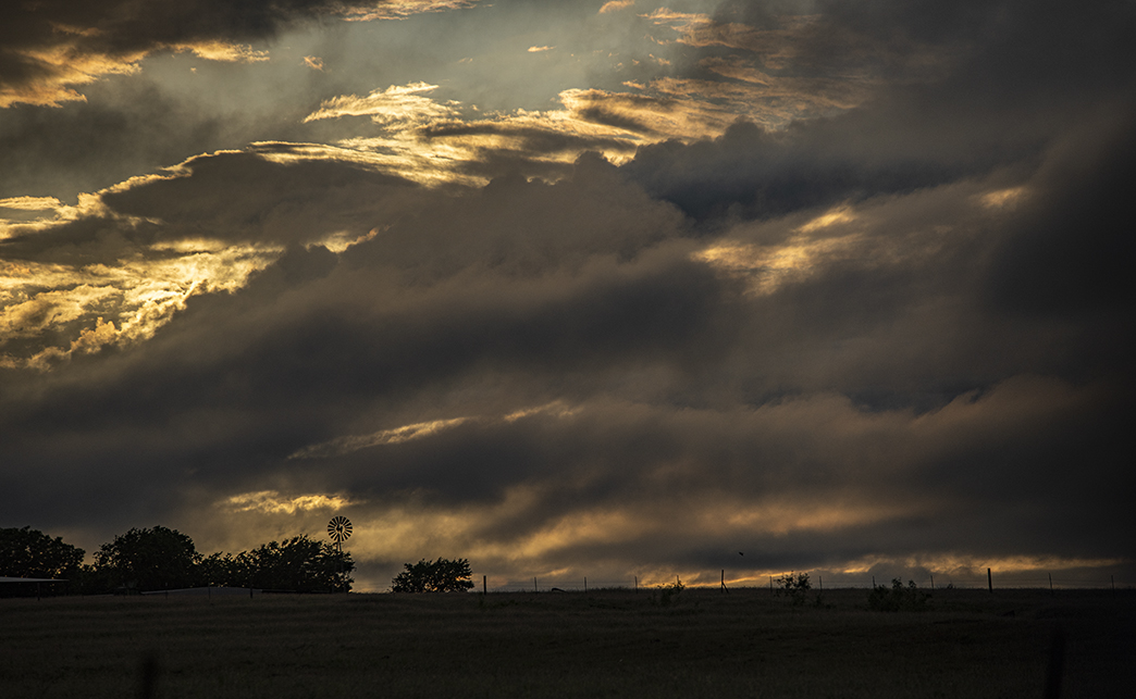 After a day of rain and cloud cover, the sun’s rays managed to peer out tonight near Thrall, Texas. Presented here are a few variations on a theme.