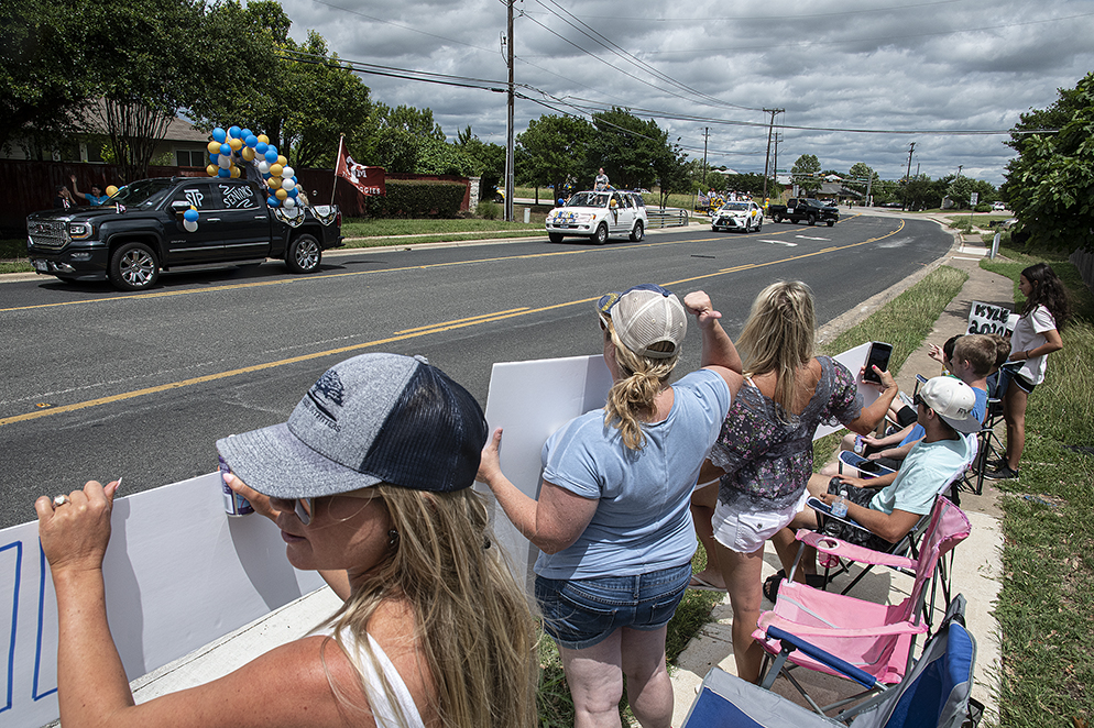 In these times of stress and uncertainty, we’re learning to adapt as needed. For many schools, traditional graduation ceremonies have been set aside. Some schools, like Round Rock’s Stony Point High School, find a way to honor their kids. Stony Point is graduating 625 students this year. This afternoon, they gathered in their cars and held a parade to mark the occasion. The phrase “new normal” is common now, but I’m hoping we can get beyond that and return to the “old normal.” The students I saw today were inspirational. These photos were taken for the Austin American-Statesman.