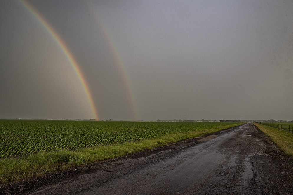 We had a stormy day on the Blackland Prairie this afternoon. A few neighbors, and even our HEB grocery, lost power for a while. After it was all done, I decided to wander around to see the results. While I had some other nice images, just before heading for home a very nice rainbow was given to us. As is always the case, they don’t stay around long. And when they do, I’m usually in the wrong place to take photos. This time, however, things worked out. These are along one county road a little southeast of Granger. By the time I got to the barn, the the color had faded a bit, but it was still there. Rainbows are a gift.