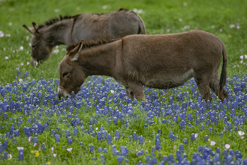 A couple of scenes spotted around some Williamson County, Texas pastures. We’re having a good wildflower season. I think the bluebonnets will play out soon around Central Texas, but we have more varieties on the way. The donkeys and llama? They’re here all year long!