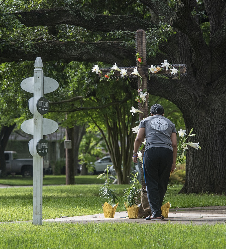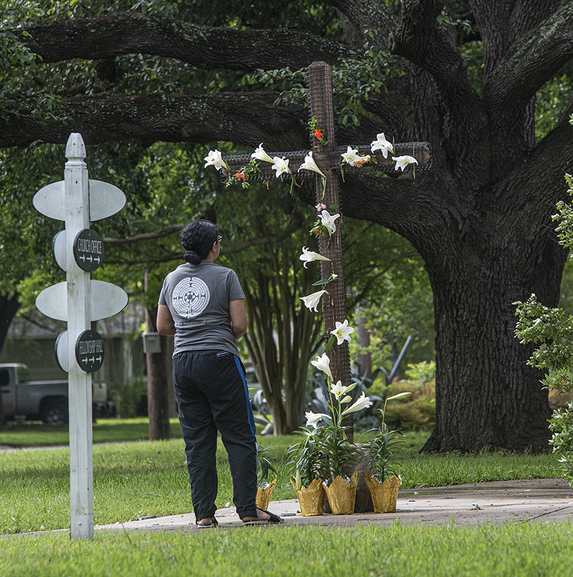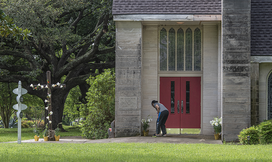 This is just something I saw while running a quick errand this morning. The scene is at Taylors First United Methodist Church. Although we’ve not met, I believe this is their pastor, taken a few minutes before an online Easter sermon. I thought it worth sharing.