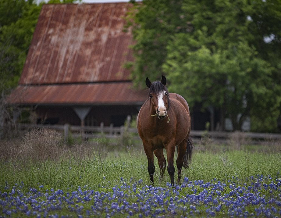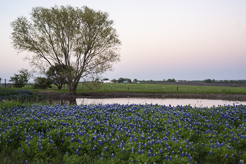 This photo was taken tonight near Jonah, Texas. The day’s light had mostly faded. There’s a little movement evident in the four-legged friend, but not enough to send this one to the trash. Bluebonnets are beginning to be overtaken by more powerful weeds, but they’re still out there for a while.